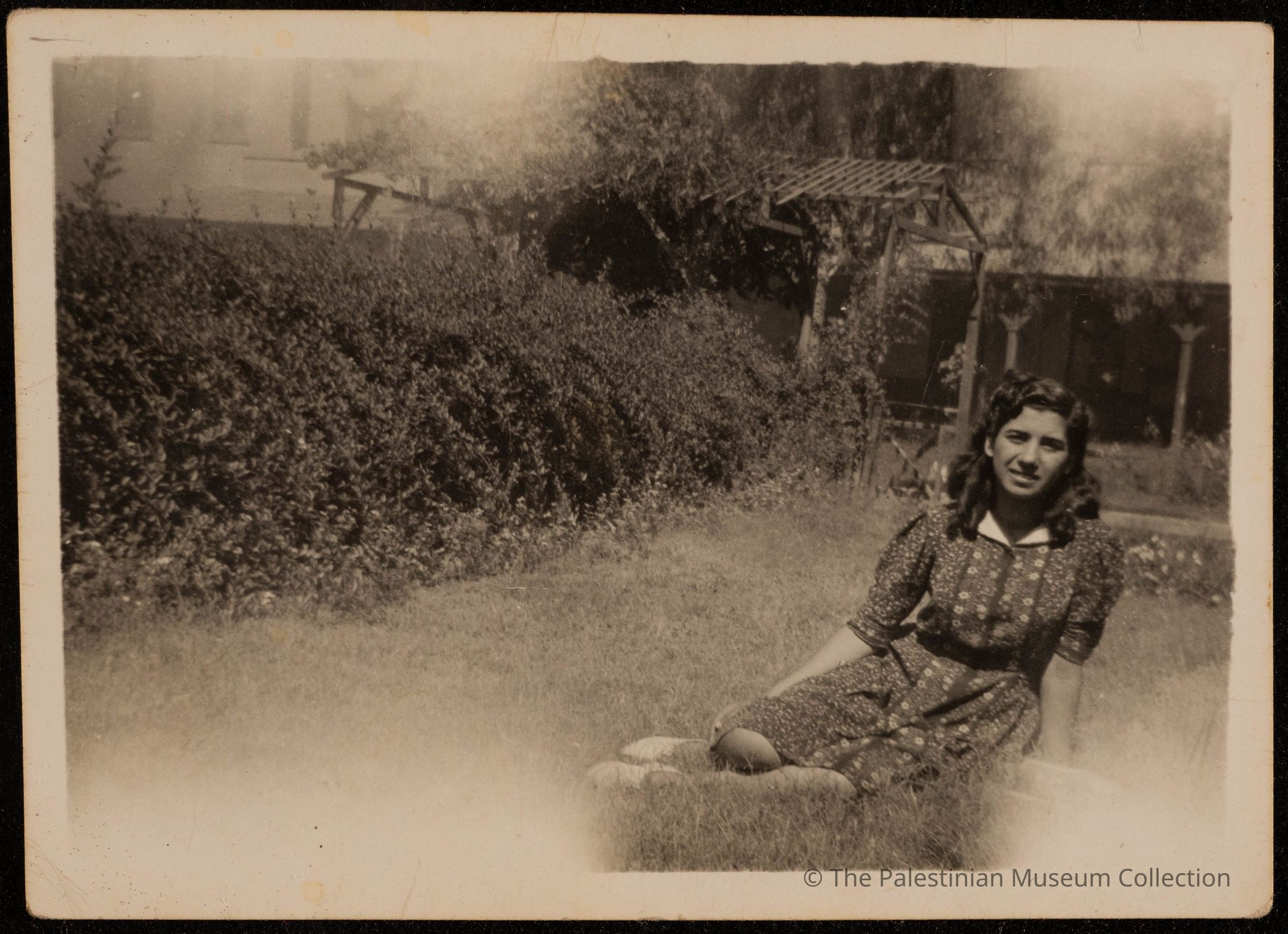 صورة الفنانة فاطمة المحب في حديق معهد الفنون الجميلة في القاهرة سنة 1949