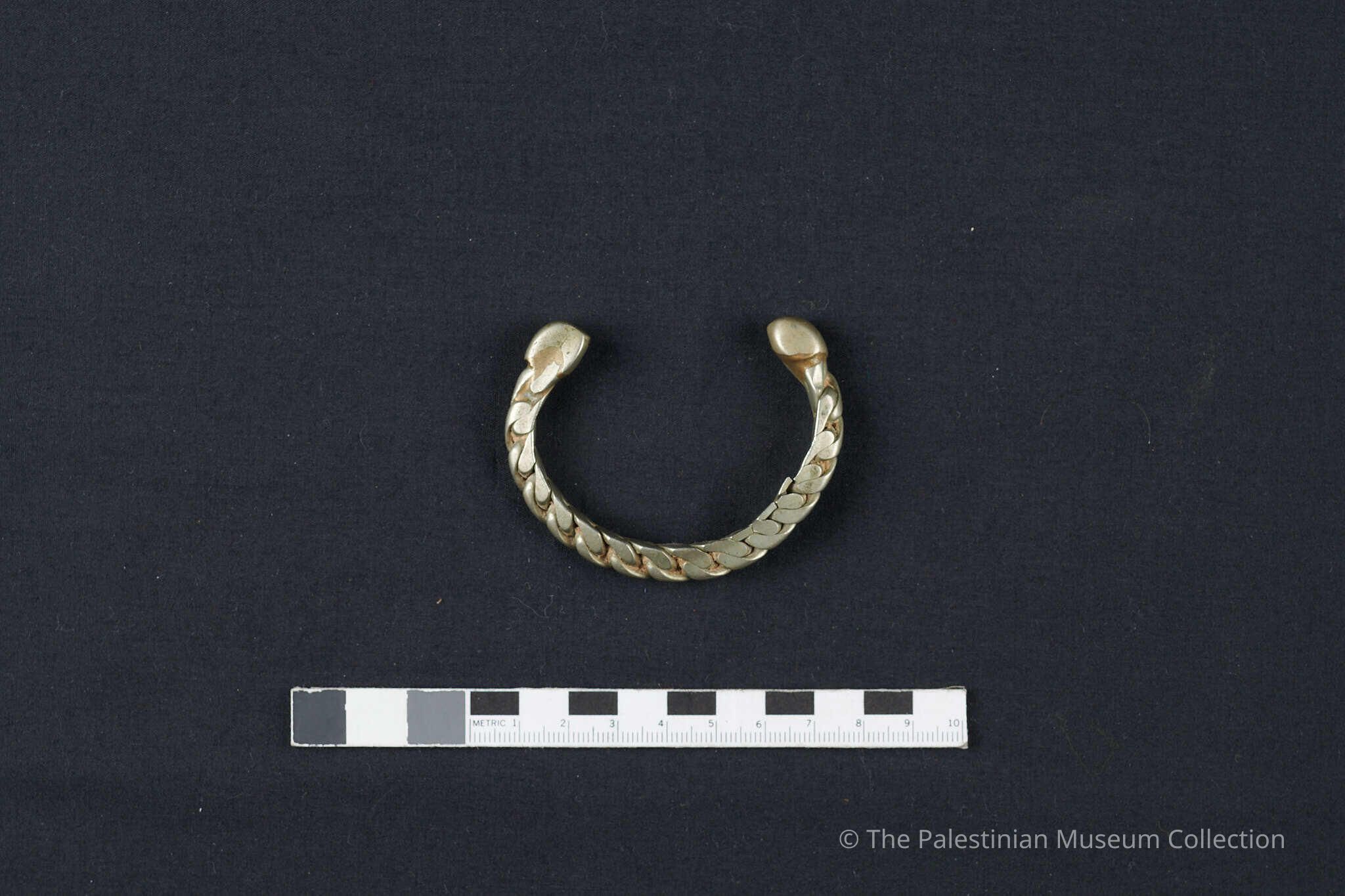 إسورة مبرومة من الفضّة الثقيلة، وهي مفتوحة من الخلف وبلا قفل، ولها رأسان مُضلّعان