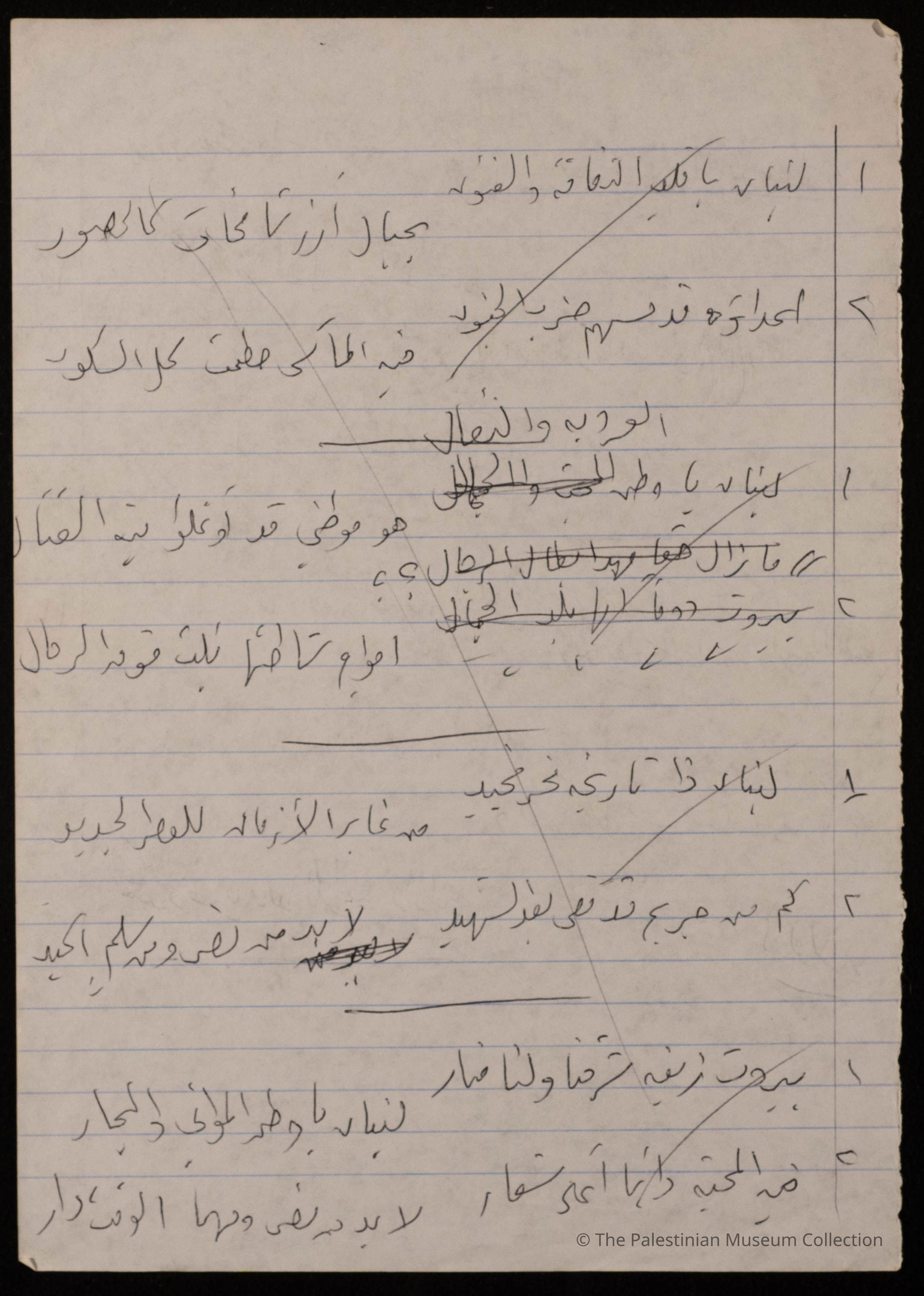 مخطوطة قصيدة باللغة العربية بعنوان" لبنان حبك دائم في القلوب" للشاعرة فاطمة المحب، ولا تحمل الوثيقة اية اشارة الى تاريخ كتابتها
