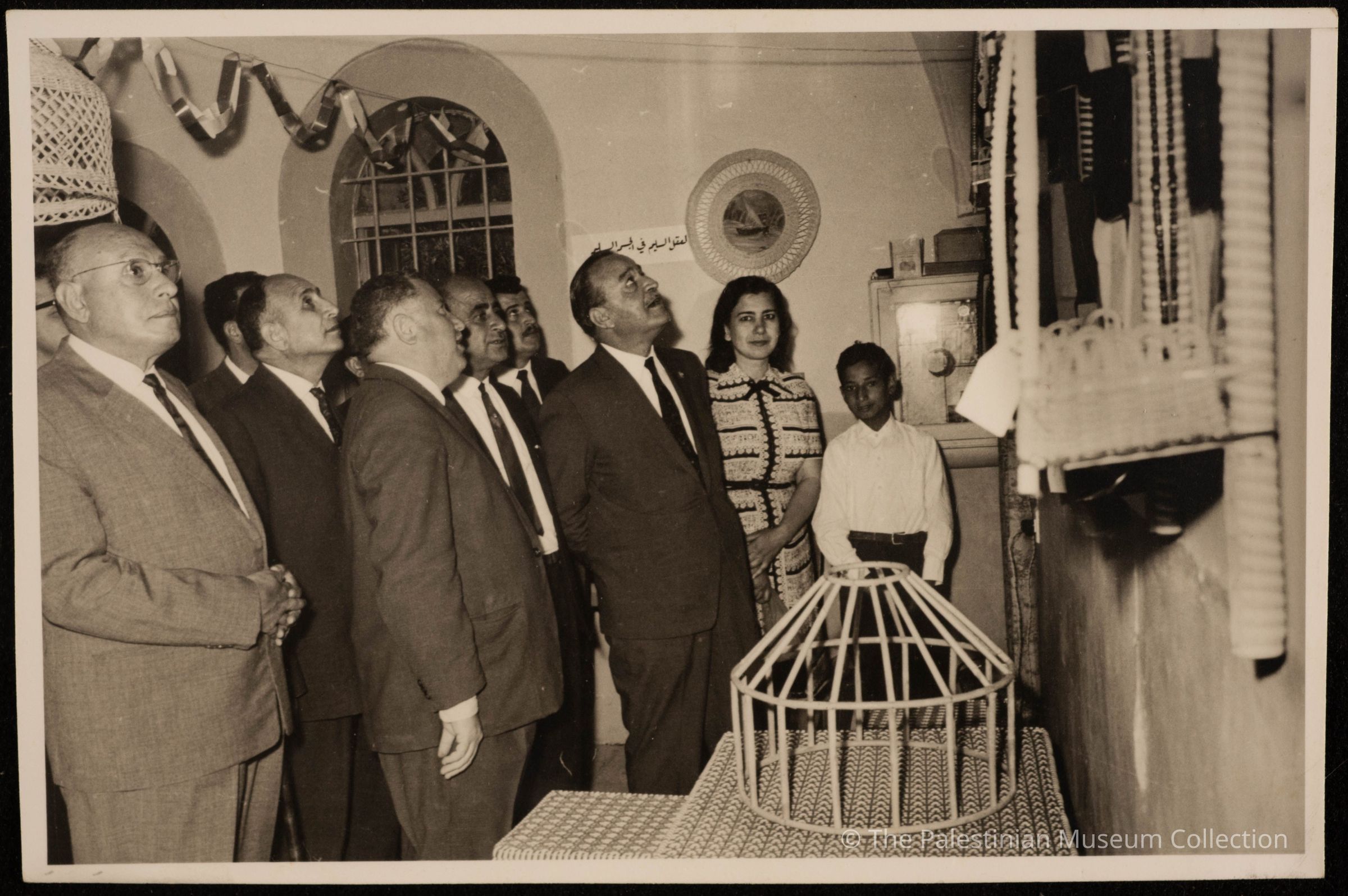 صورة للفنانة فاطمة المحب برفقة شخصيات اردنية، اثناء ادائهم جولة في معرض وسائل الايضاح الذي اشرفت عليه فاطمة المحب
