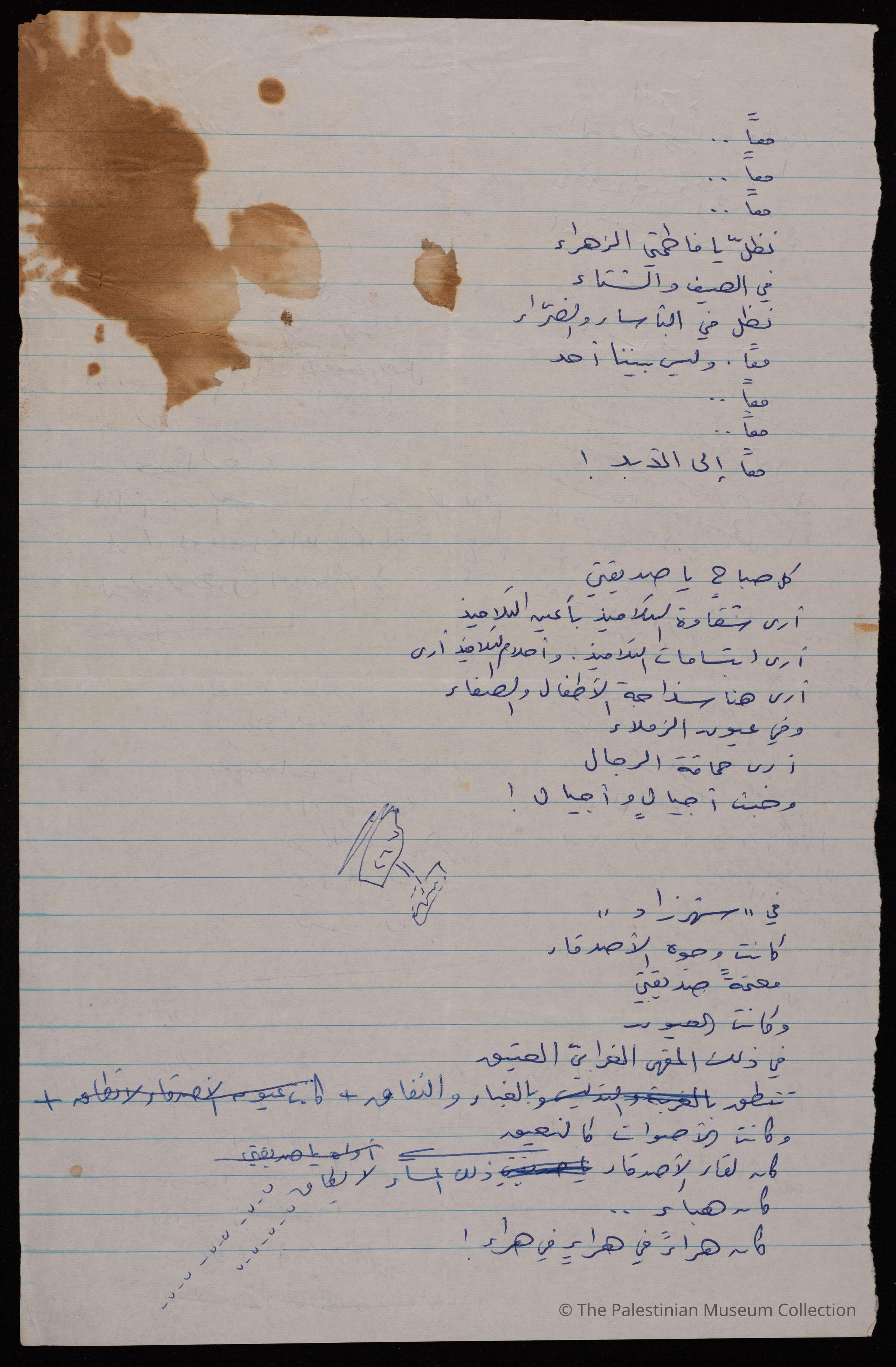 وثيقة مكتوبة بخط اليد وباللغة العربية لعلي فودة وهي عبارة عن مسودات لقصائد متنوعة لفودة، حيث افتتح القصيدة الأولى ب"معا، معا"، والثانية ب"كل صباح يا صديقتي"، والثالثة ب"شهرزاد".