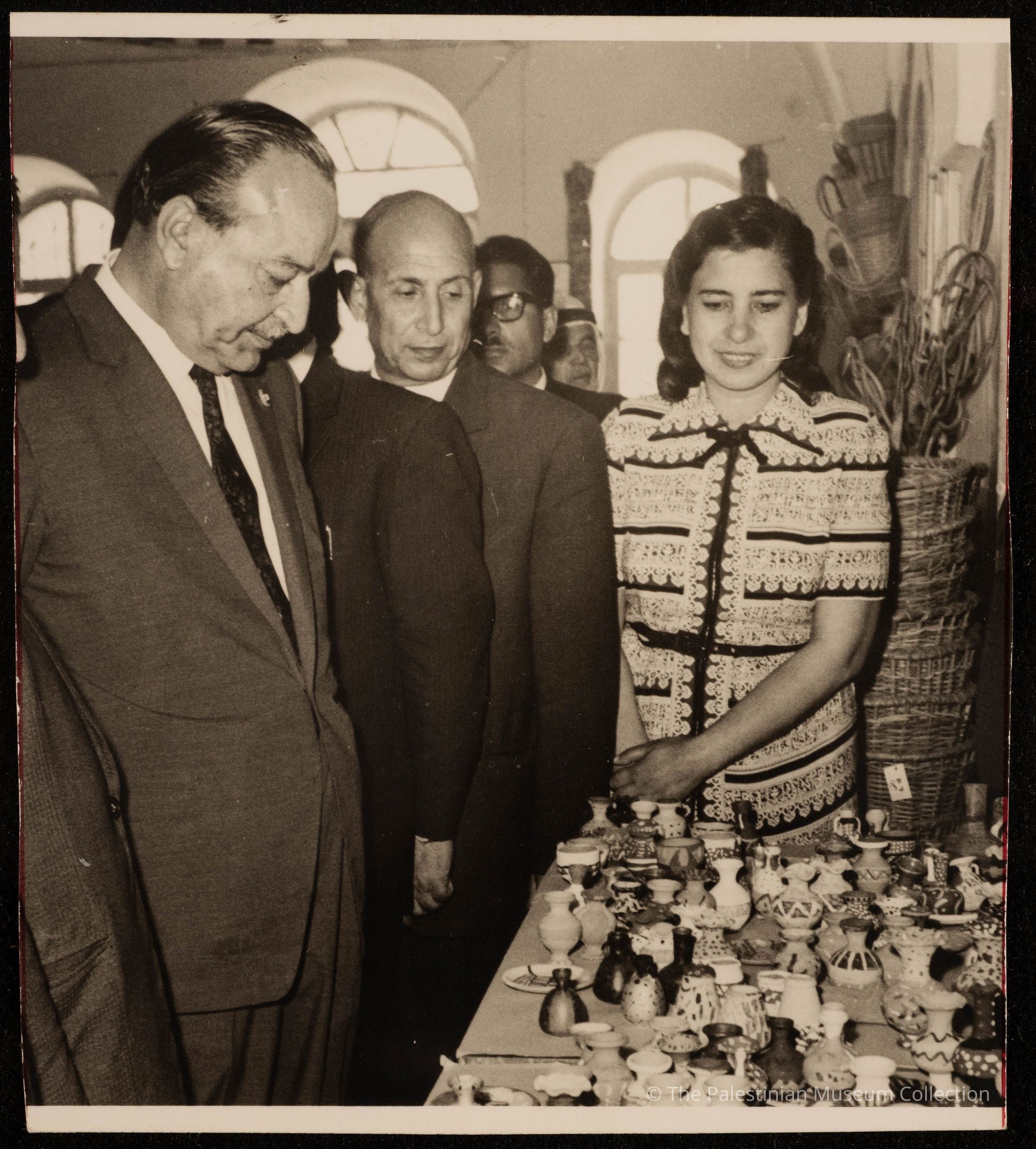 صورة الفنانة فاطمة المحب وشخصيات اردنية اثناء ادائهم جولة في معرض وسائل الايضاح الذي اشرفت عليه فاطمة المحب