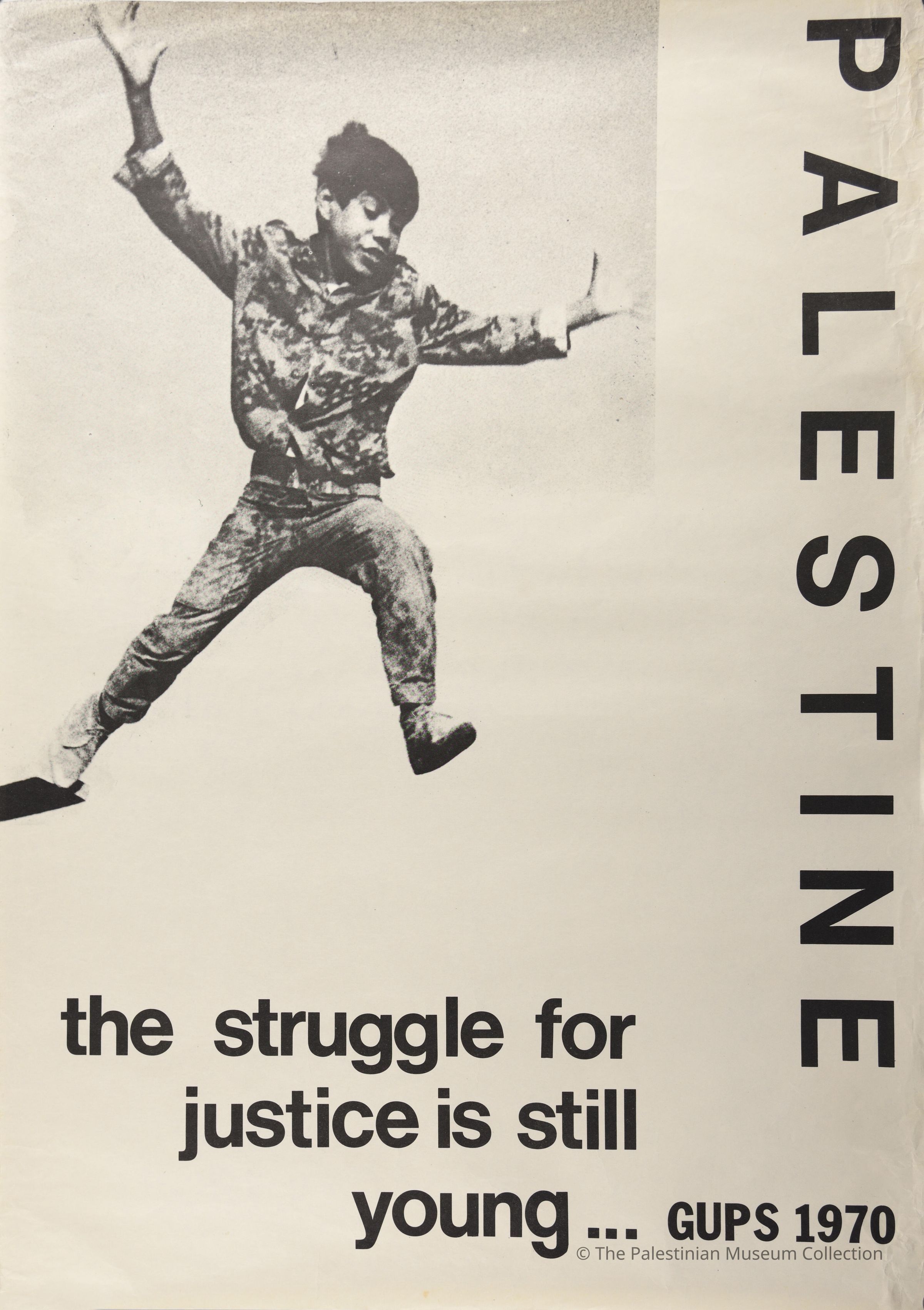 A poster entitled 'The Struggle for Justice is Still Young' issued by the General Union of Palestinian Students in 1970.Dimensions