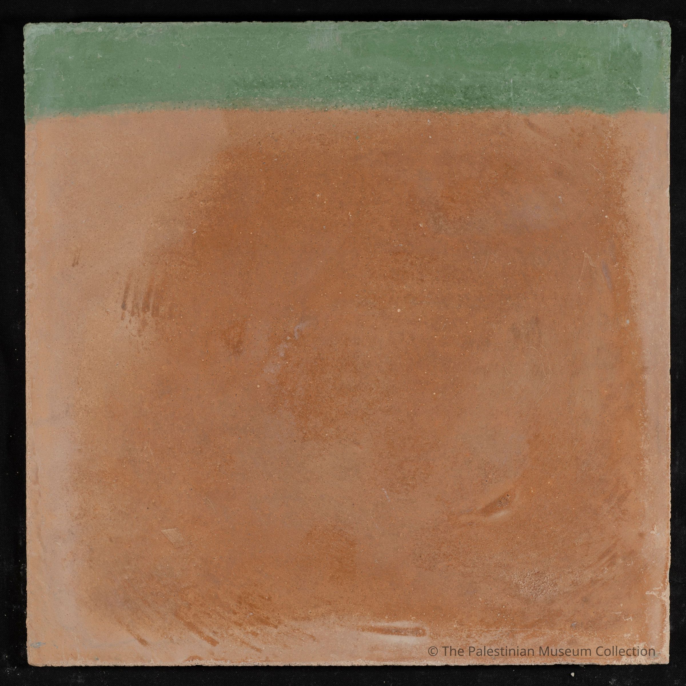 A 20 × 20 cm coloured cement tile featuring "Zunnar Al-Huz (Line Border)" design. This tile is a contemporary reproduction, cast using an original mold from the Aslan Tile Factory in Nablus, which dates back to the 1940s.Made/Created