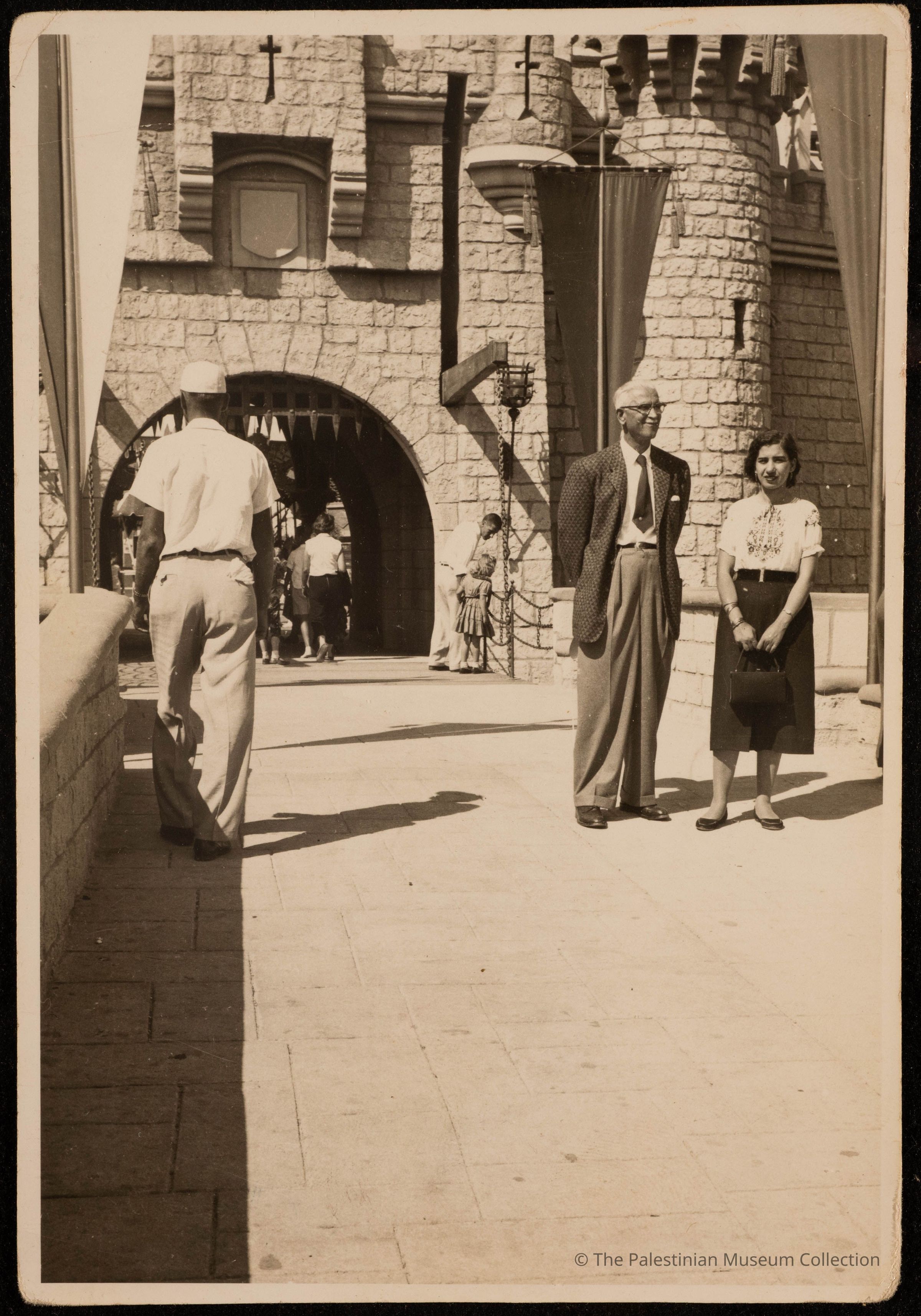 صورة الفنانة فاطمة المحب برفقة زميل لها في لندن أثناء مشاركتها في مسابقة دولية عن الفنون الجميلة، كانت فاطمة قد فازت فيها عن تمثال "السجين السياسي المجهول".