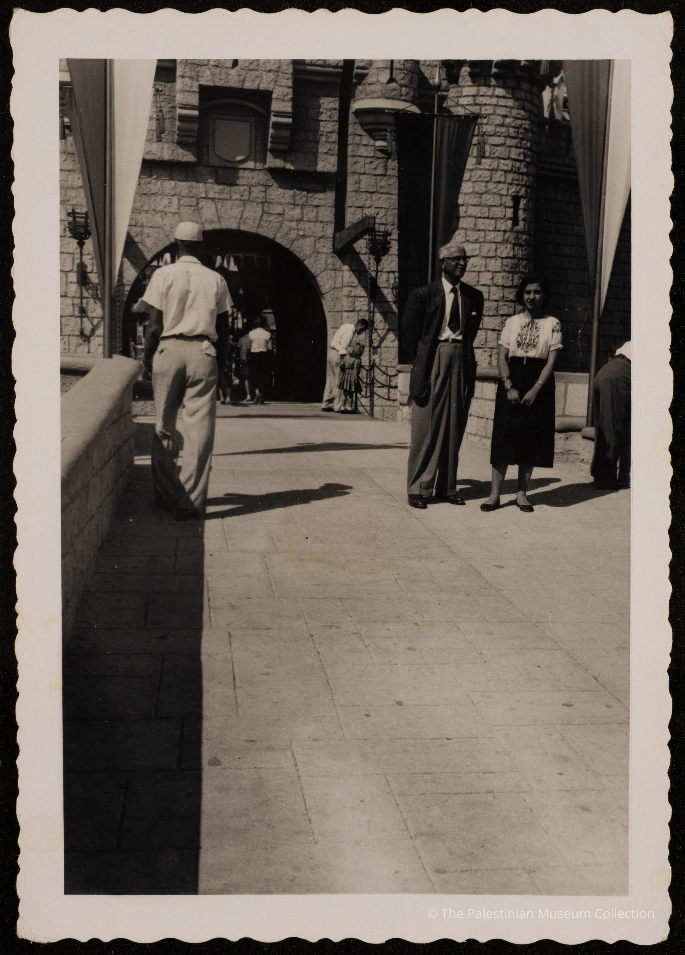 صورة الفنانة فاطمة المحب برفقة زميل لها في لندن أثناء مشاركتها في مسابقة دولية عن الفنون الجميلة، كانت فاطمة قد فازت فيها عن تمثال "السجين السياسي المجهول".