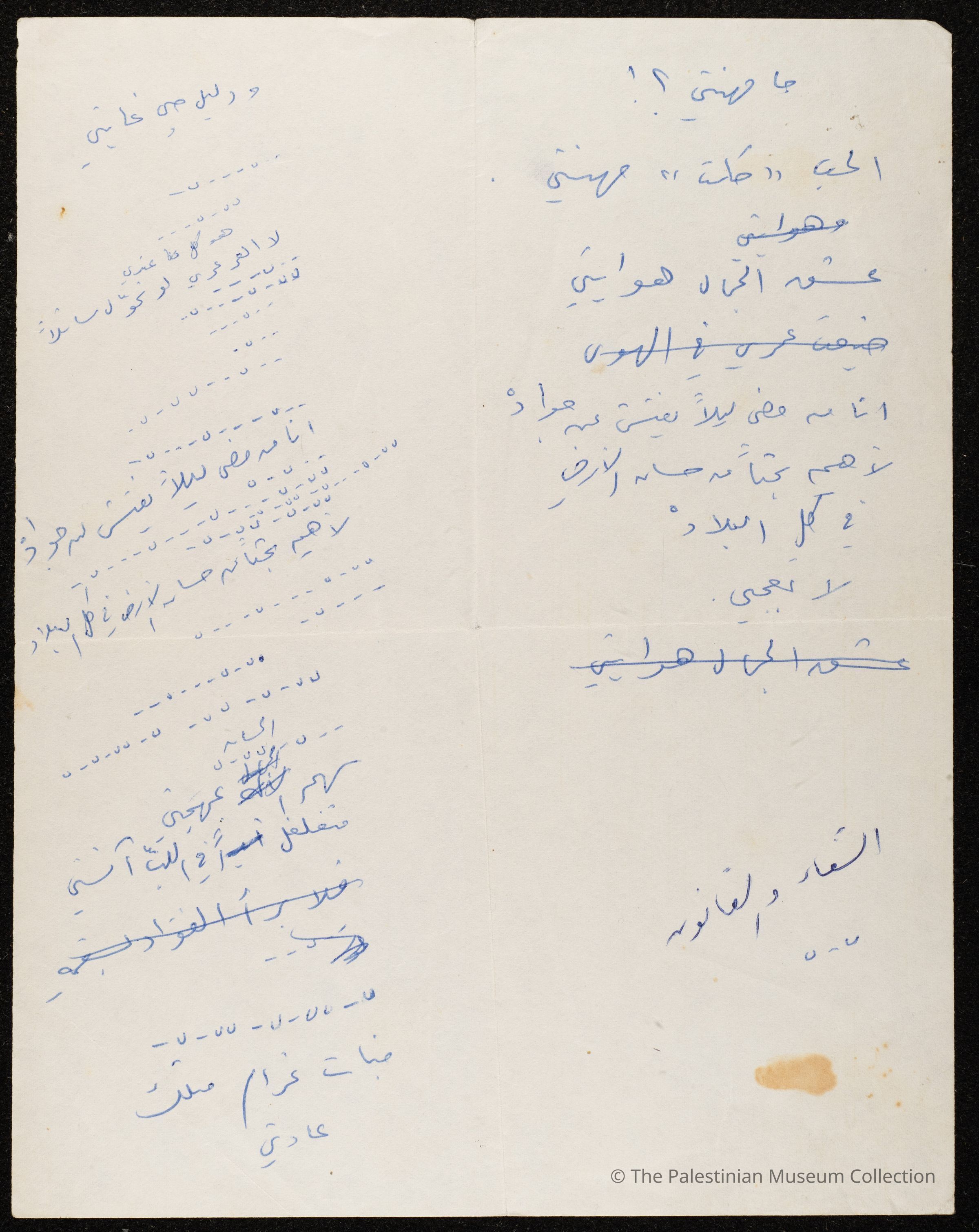 مسودة ابيات شعر للشاعر علي فودة، تحتوي على 7 اسطر من النثر، كتبت بخط يد الشاعر علي فودة.