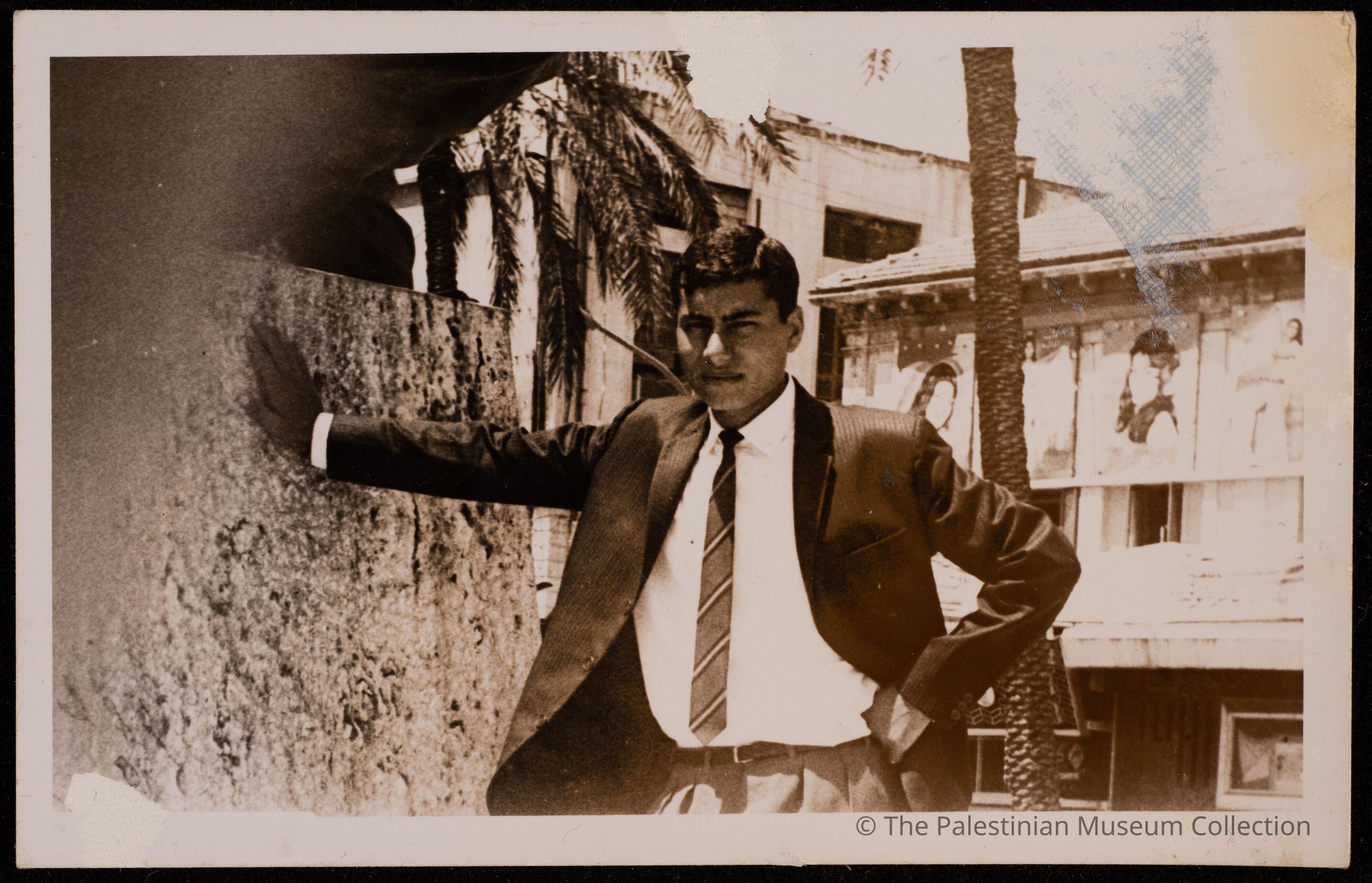 صورة غير ملونة، يظهر فيها علي فودة مرتدي بدلة رسمية وربطة عنق وخلفه شجرة