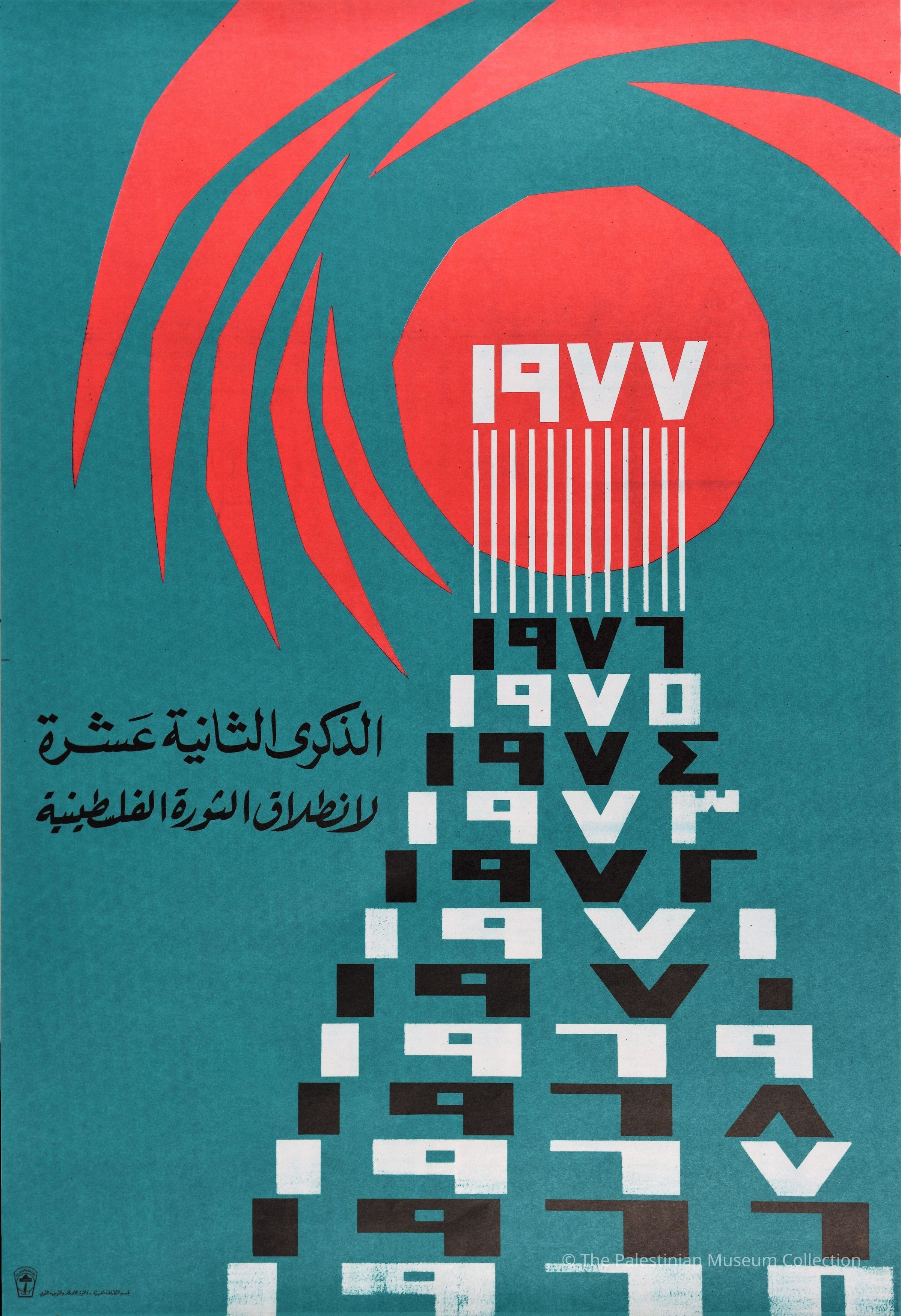 A colour poster showing the years of the Palestinian Revolution; 1965-1977.Dimensions