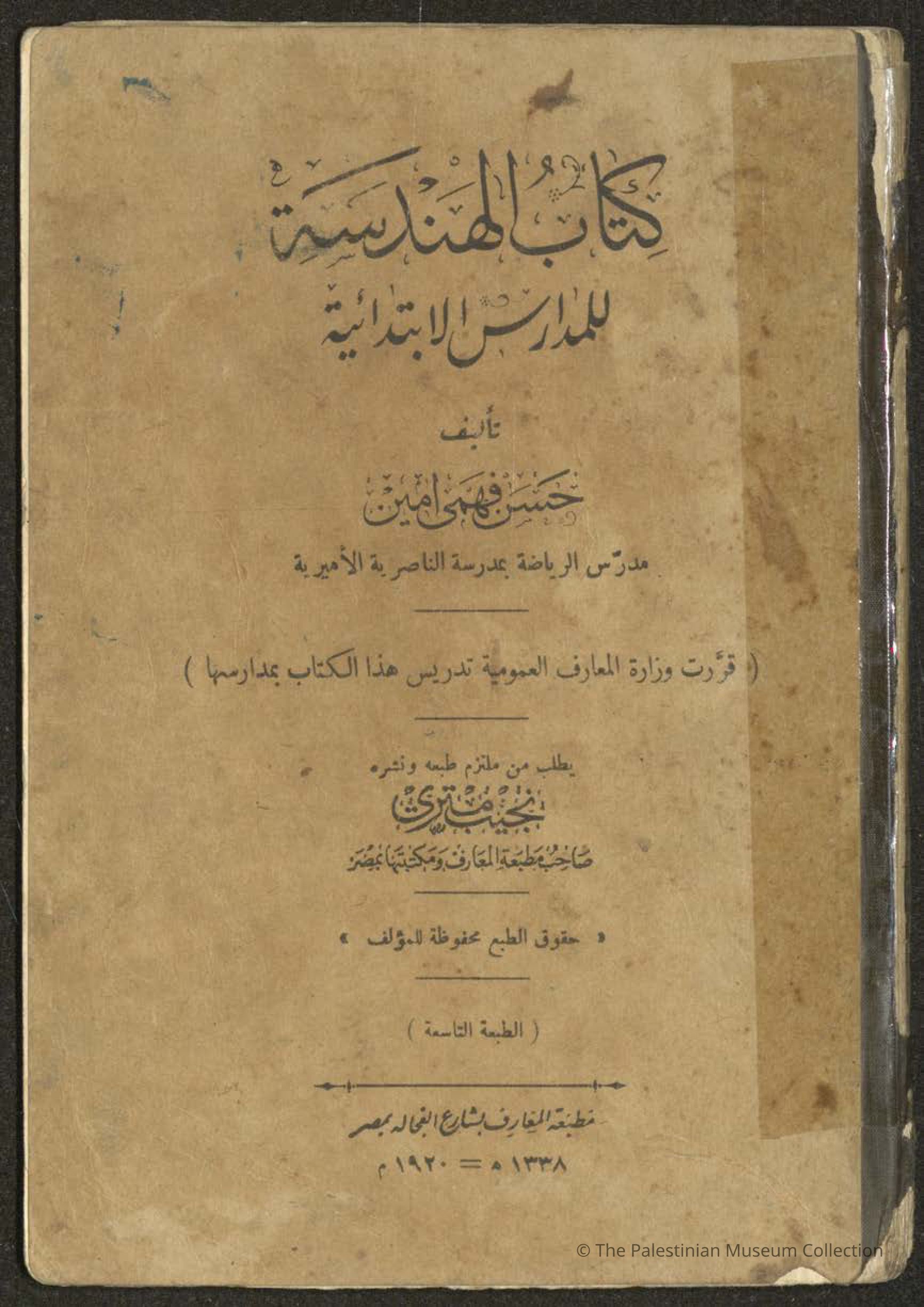 "Geometry for Primary Schools," authored by Hassan Fahmy Amin, a math teacher at Al-Naseriyah Amiriya School. The book was published by Al-Ma'aref Press on Faggala Street in Egypt in 1920 and is 122 pages long.Dimensions