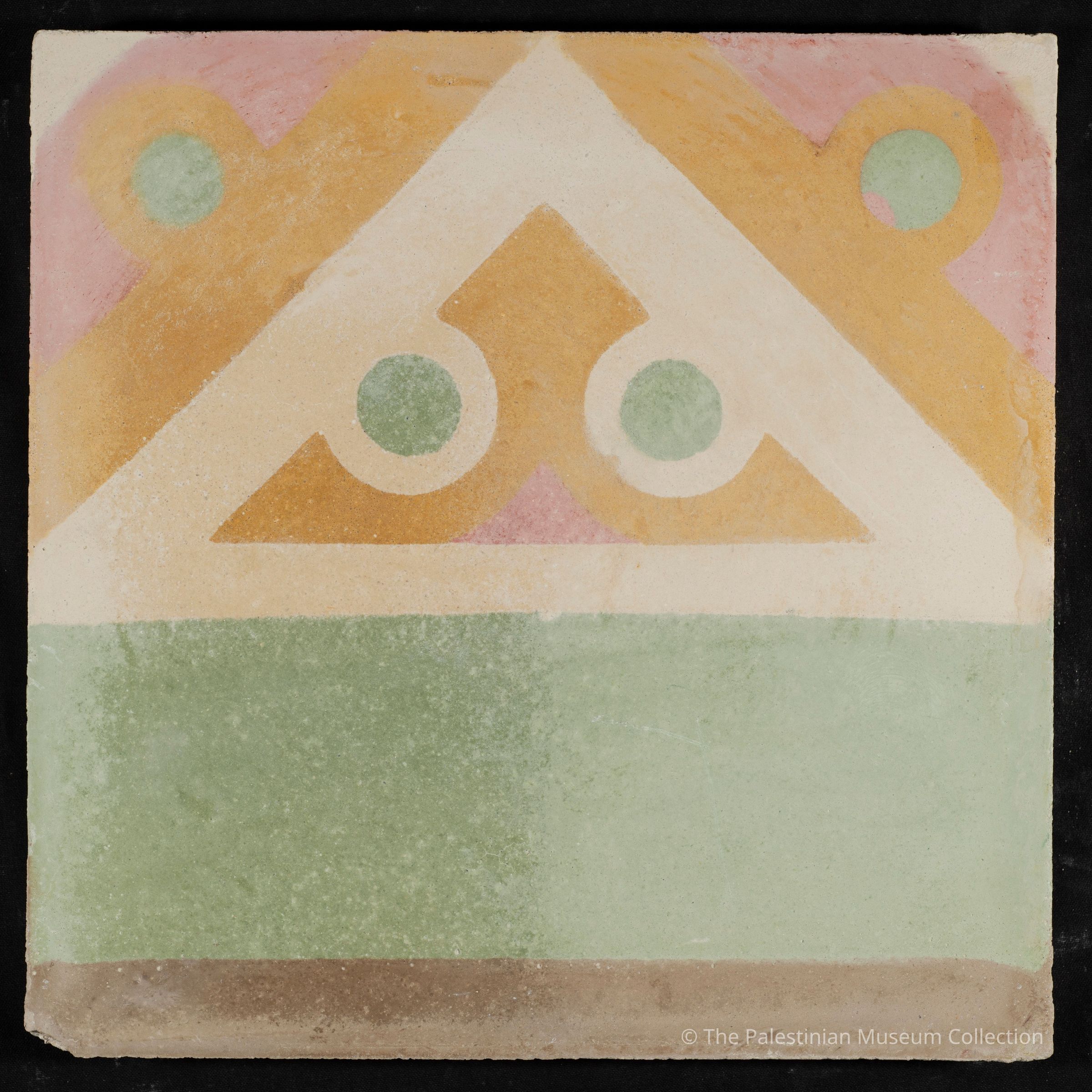 A 20 × 20 cm coloured cement tile. This tile is a contemporary reproduction, cast using an original mold from the Aslan Tile Factory in Nablus, which dates back to the 1920s.Made/Created