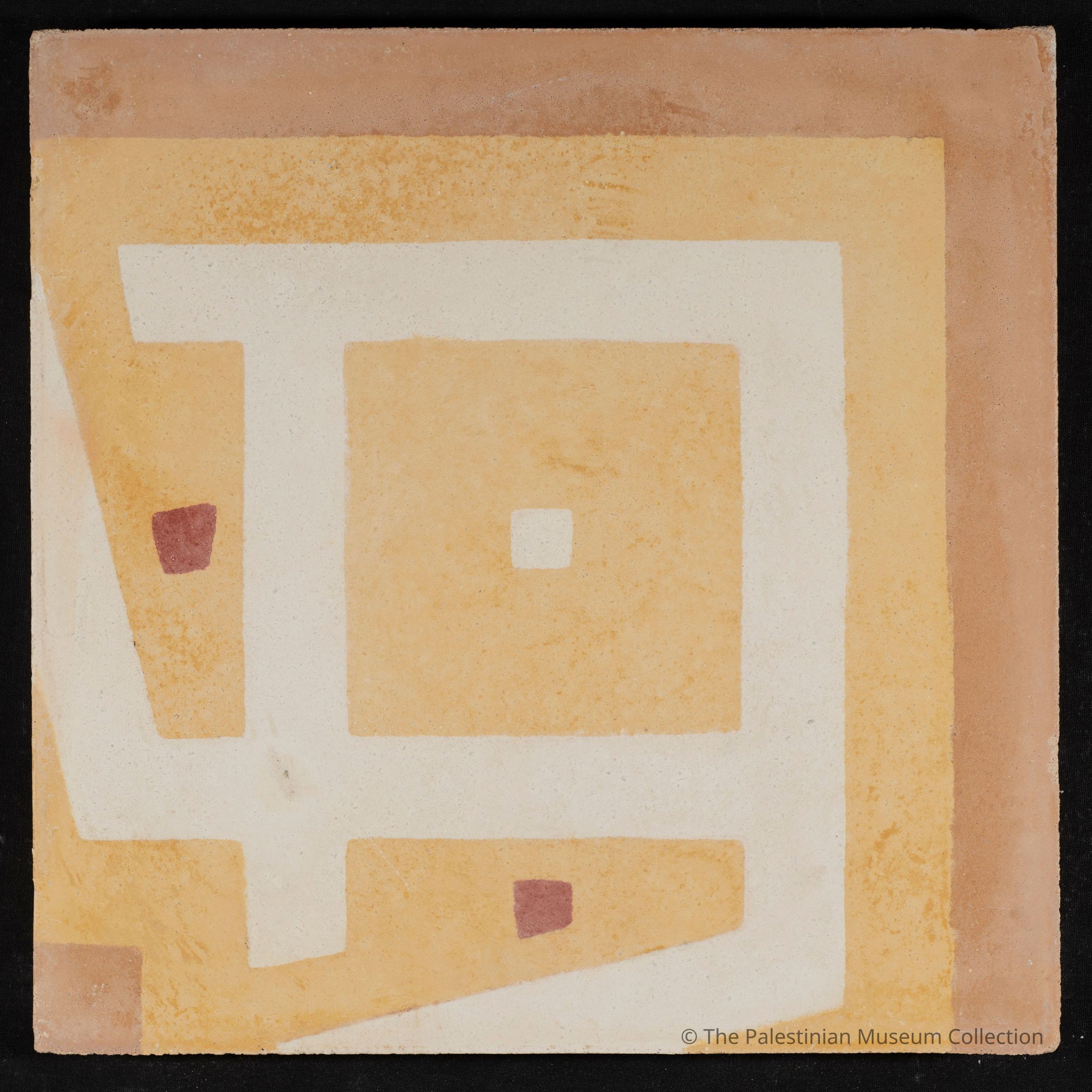 A 20 × 20 cm coloured cement tile. This tile is a contemporary reproduction, cast using an original mold from the Aslan Tile Factory in Nablus.Made/Created