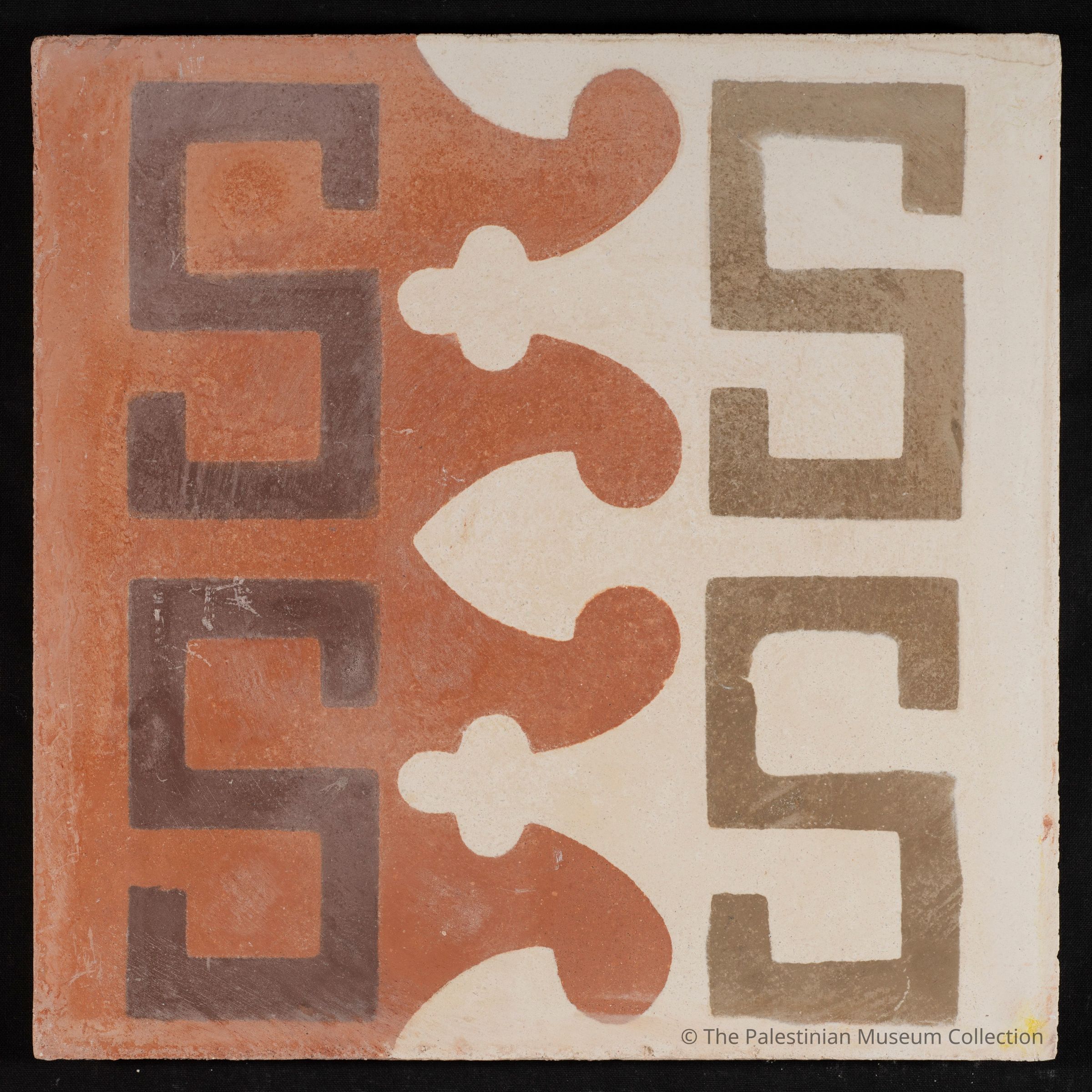A 20 × 20 cm coloured cement tile. This tile is a contemporary reproduction, cast using an original mold from the Aslan Tile Factory in Nablus.Made/Created