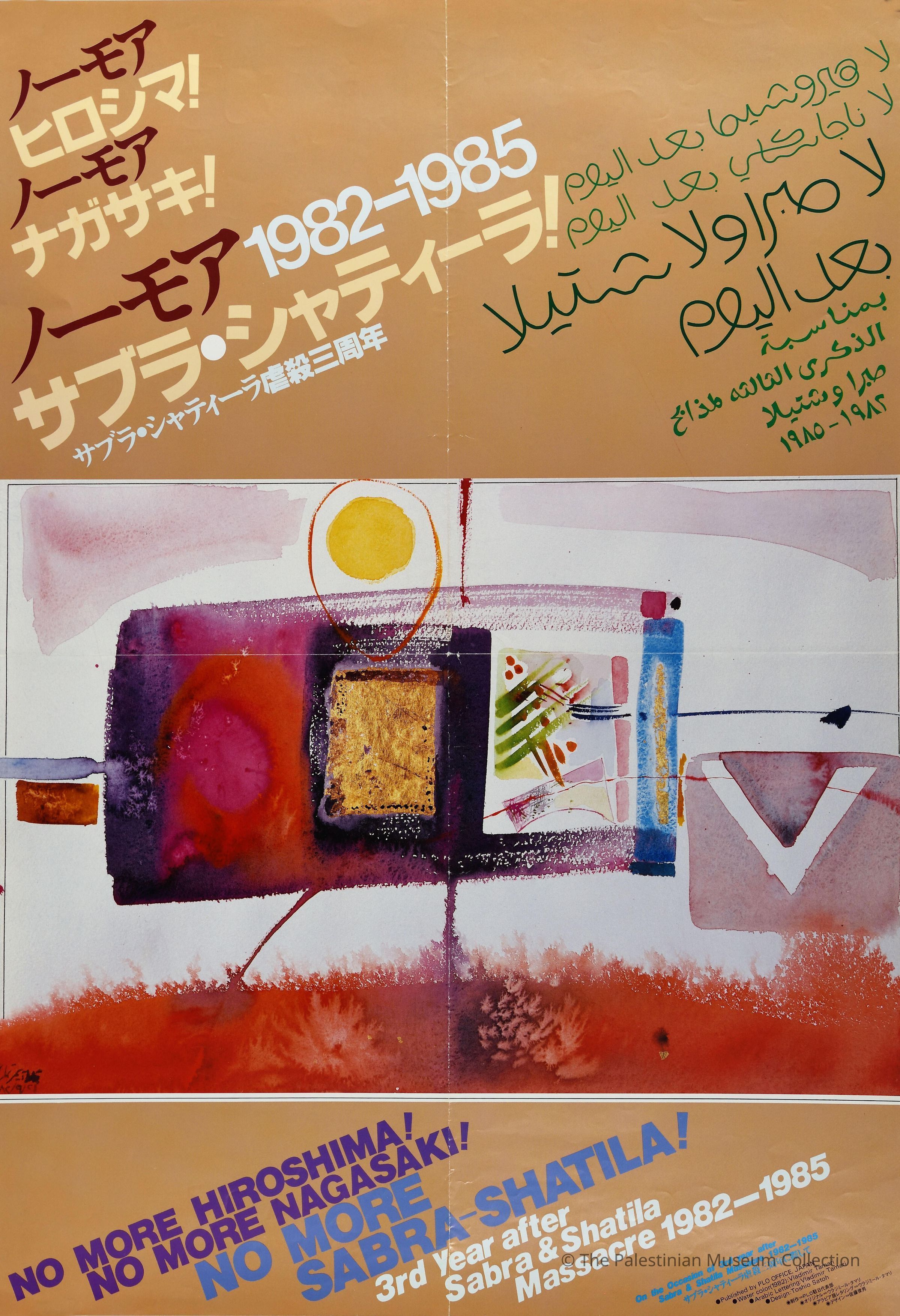 ملصق ملون، عبارة عن رسمة (فن تشكيلي)، نشر بمناسبة الذكرى الثالثة لمجزرة صبرا وشاتيلا.