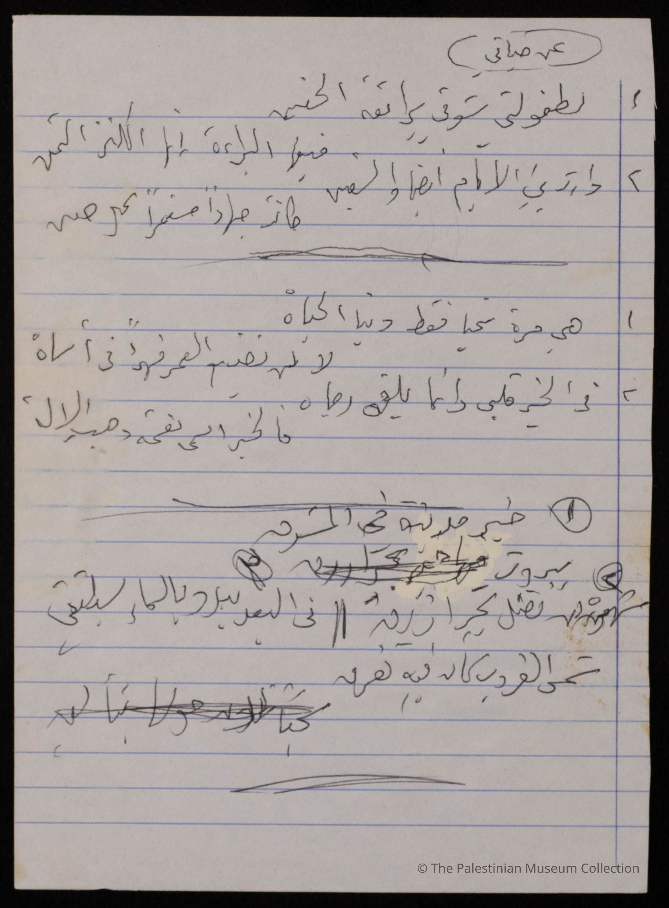 مخطوطة قصيدة باللغة العربية بعنوان" عن حياتي" للشاعرة فاطمة المحب، ولا تحمل الوثيقة اية اشارة الى تاريخ كتابتها