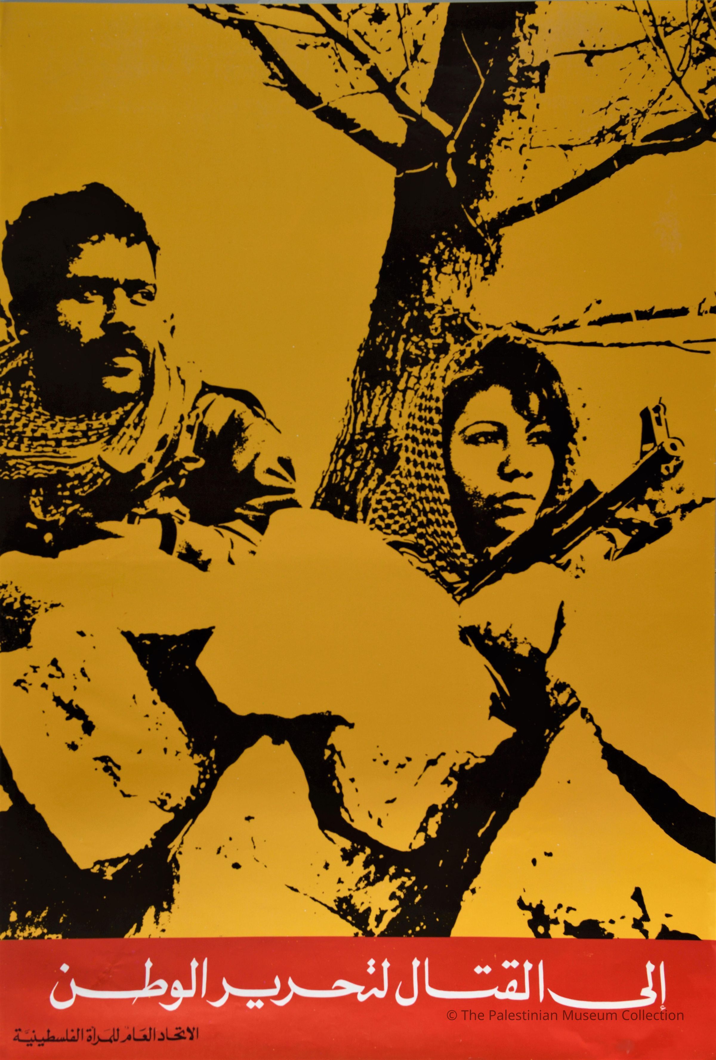A colour poster showing a man and a woman in the Palestinian Kufiya; each with a rifle.Dimensions