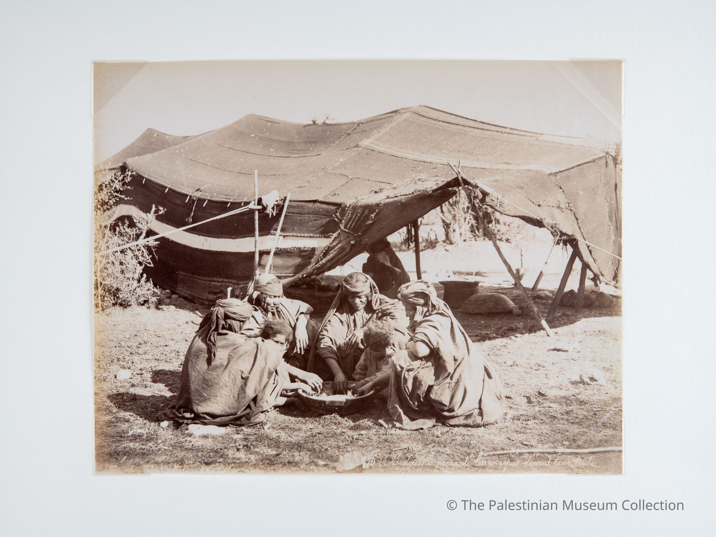 صورة فوتوغرافيّة بالأبيض والأسود، التقطها المصور فيليكس بونفيس في النصف الثاني من القرن التاسع عشر، تُظهر مشهداً من صحراء النقب جنوب فلسطين، تشمل نساءً بدويات وأطفالهن، وهم يتناولون الطعام أمام خيمتهم.