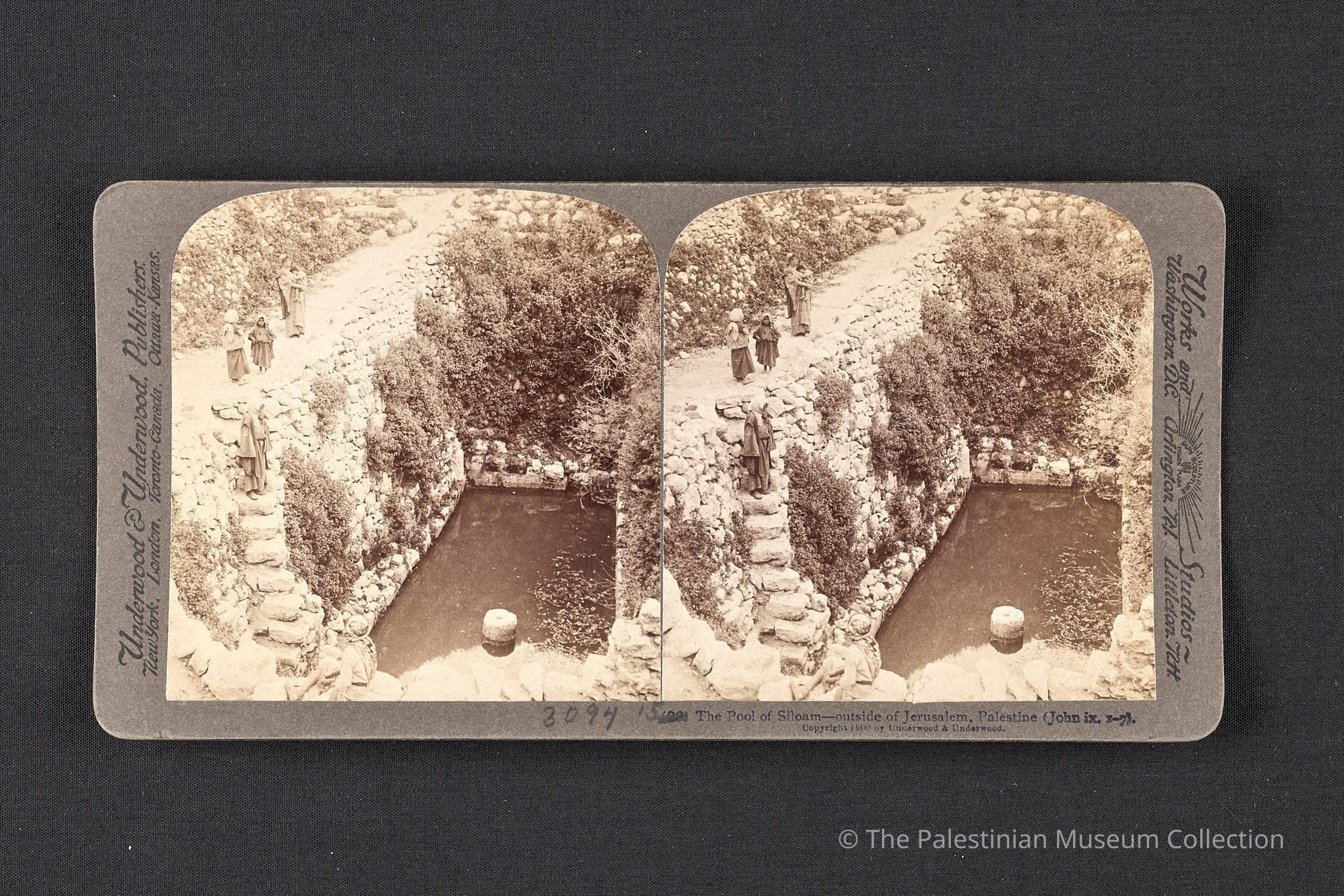 A black-and-white photograph taken by Underwood & Underwood in the early 20th century showing the Pool of Siloam, Jerusalem.Made/Created