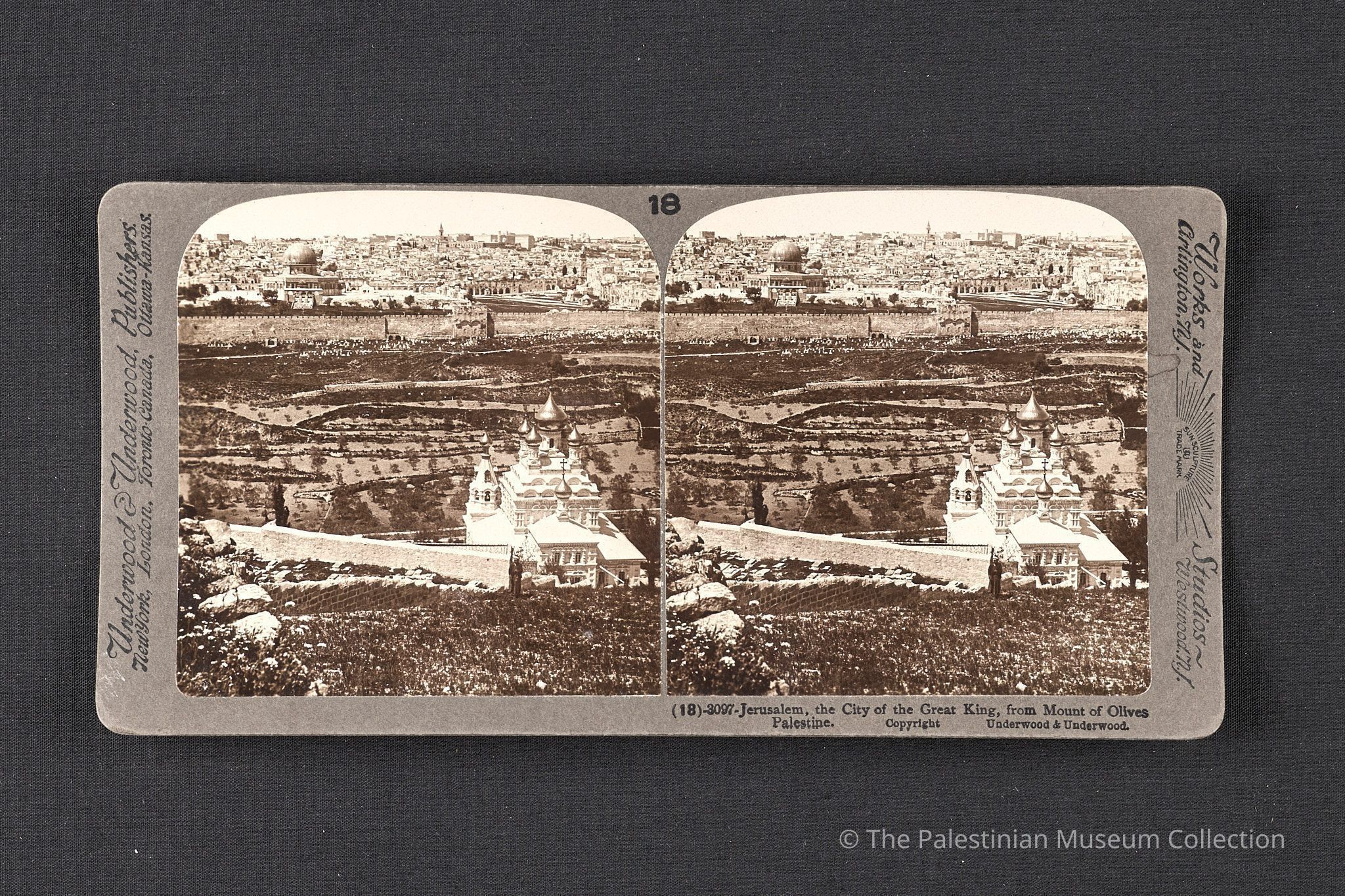 صورة فوتوغرافيّة بالأبيض والأسود، التقطتها شركة أندروود آند أندروود في أوائل القرن العشرين، تُظهر الصورة جبل الزيتون في مدينة القدس.