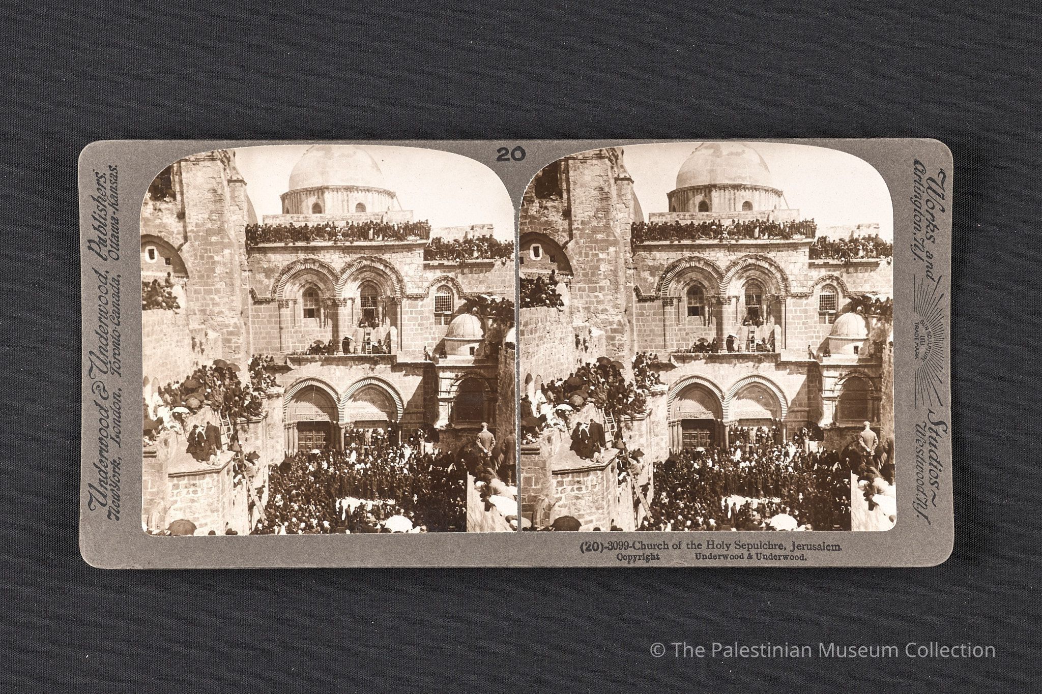 A black-and-white photograph taken by Underwood & Underwood in the early 20th century. It features the Church of Holy Sepulchre in Jerusalem.Made/Created