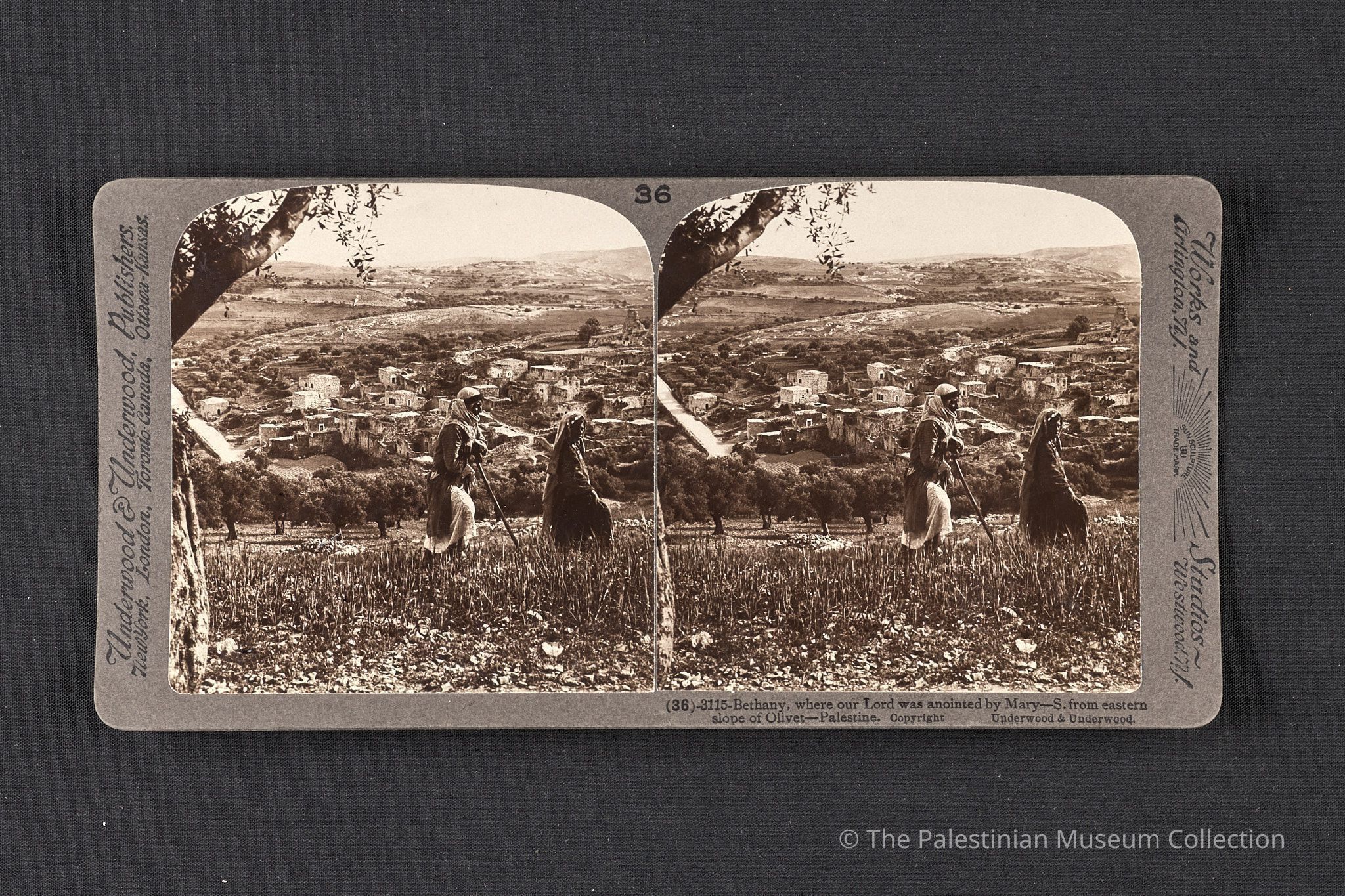 صورة فوتوغرافيّة بالأبيض والأسود، التقطتها شركة أندروود آند أندروود في أوائل القرن العشرين، تُظهر بيت عنيا من المنحدر الشرقي لجبل الزيتون في فلسطين.
