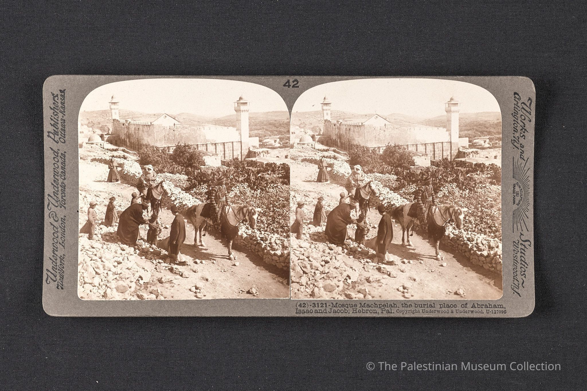 A black-and-white photograph taken by Underwood & Underwood in the early 20th century, showing the Mosque of Abraham in Hebron.Made/Created
