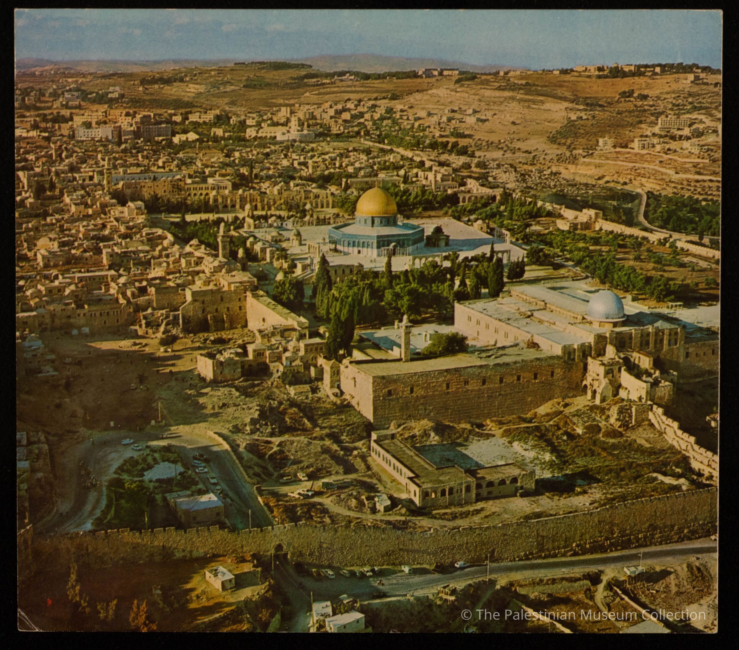بطاقة معايدة تحتوي على صورة جوية لمدينة القدس (المسجد الاقصى وقبة الصخرة وحائط المبكى)