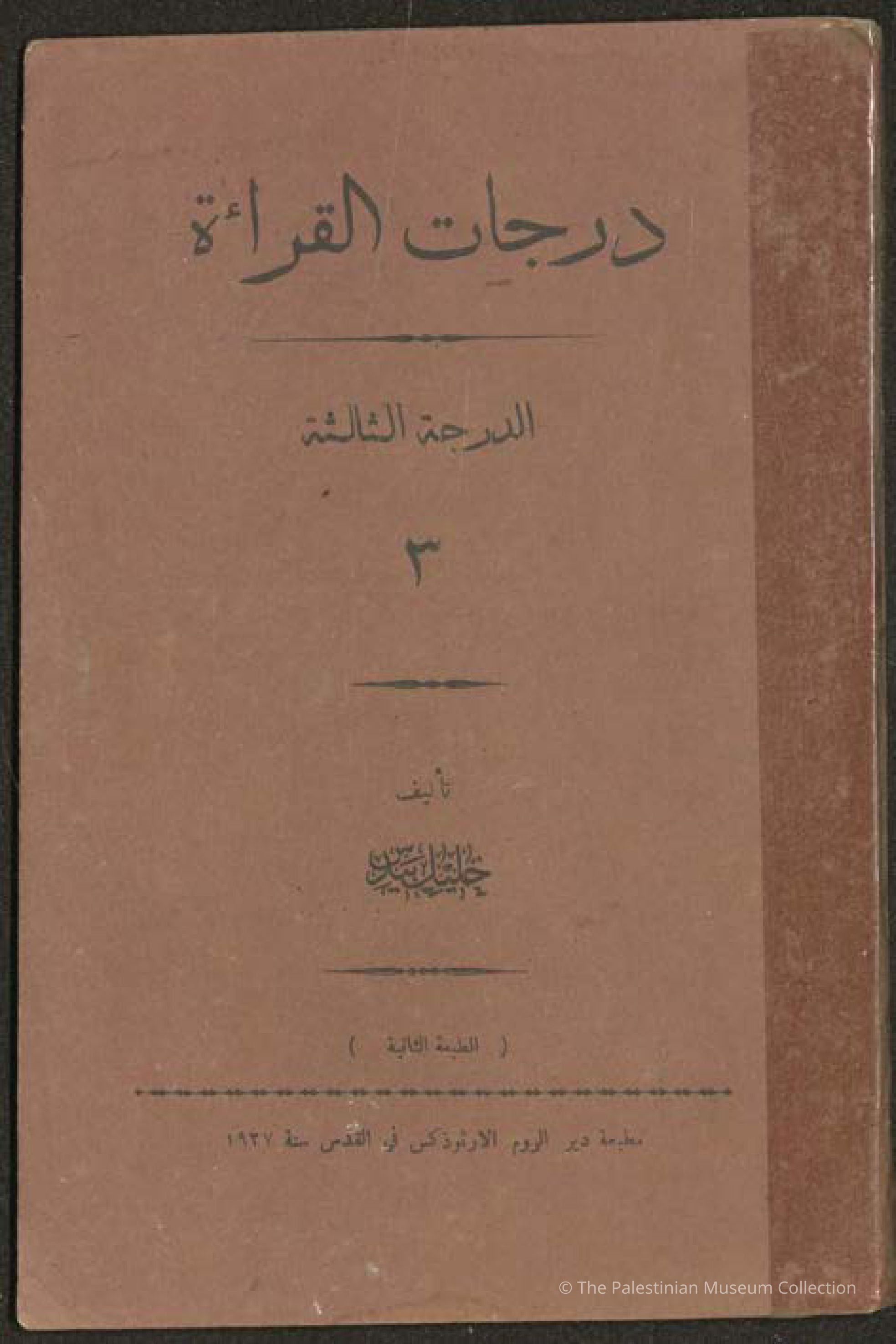 "Degrees of Reading," by Khalil Baydas was published in 1927 by the Greek Orthodox Monastery Press in Jerusalem and is 111 pages long.Dimensions