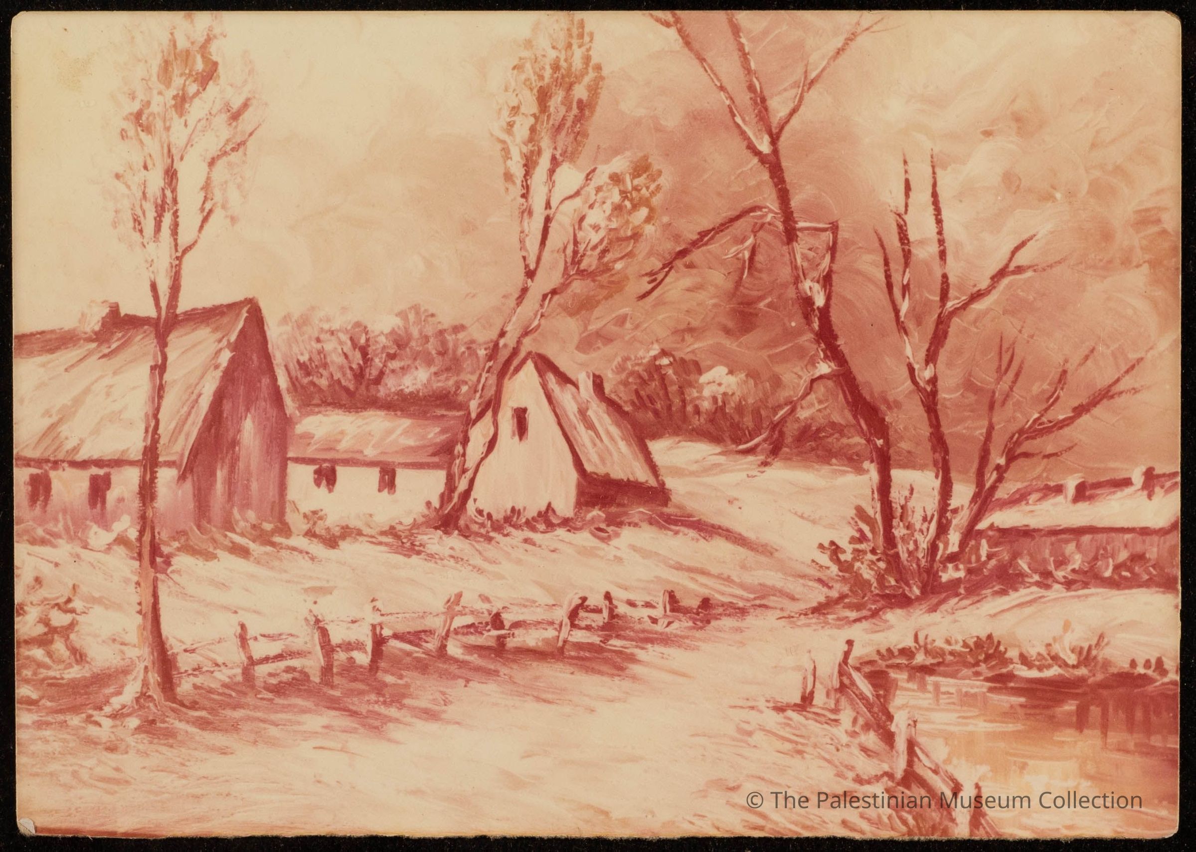 صورة عن لوحة (منزل واشجار) للفنانة فاطمة المحب
