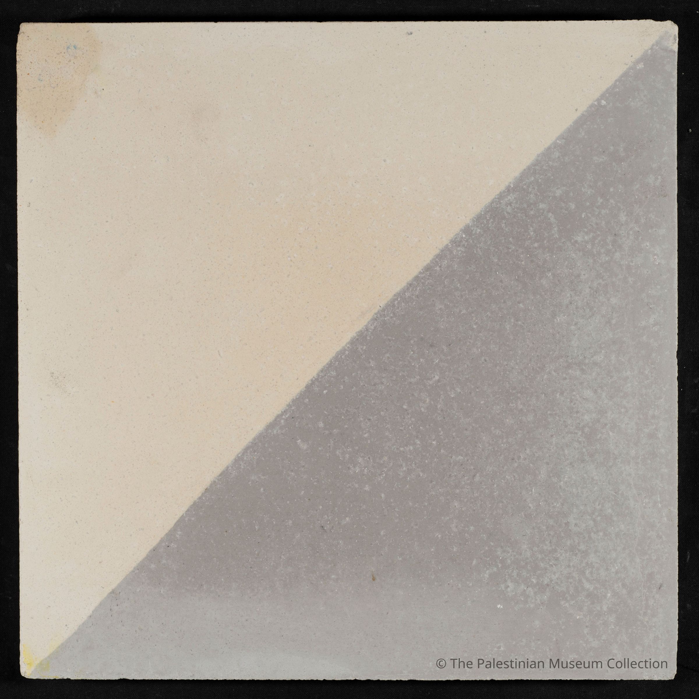 بلاطة إسمنتيّة ملوّنة بحجم 20 × 20 سم، تحمل تصميم "الحز"، وهي نموذج حديث سُكبت في قالب يمتلكه مصنع أصلان للبلاط في نابلس.