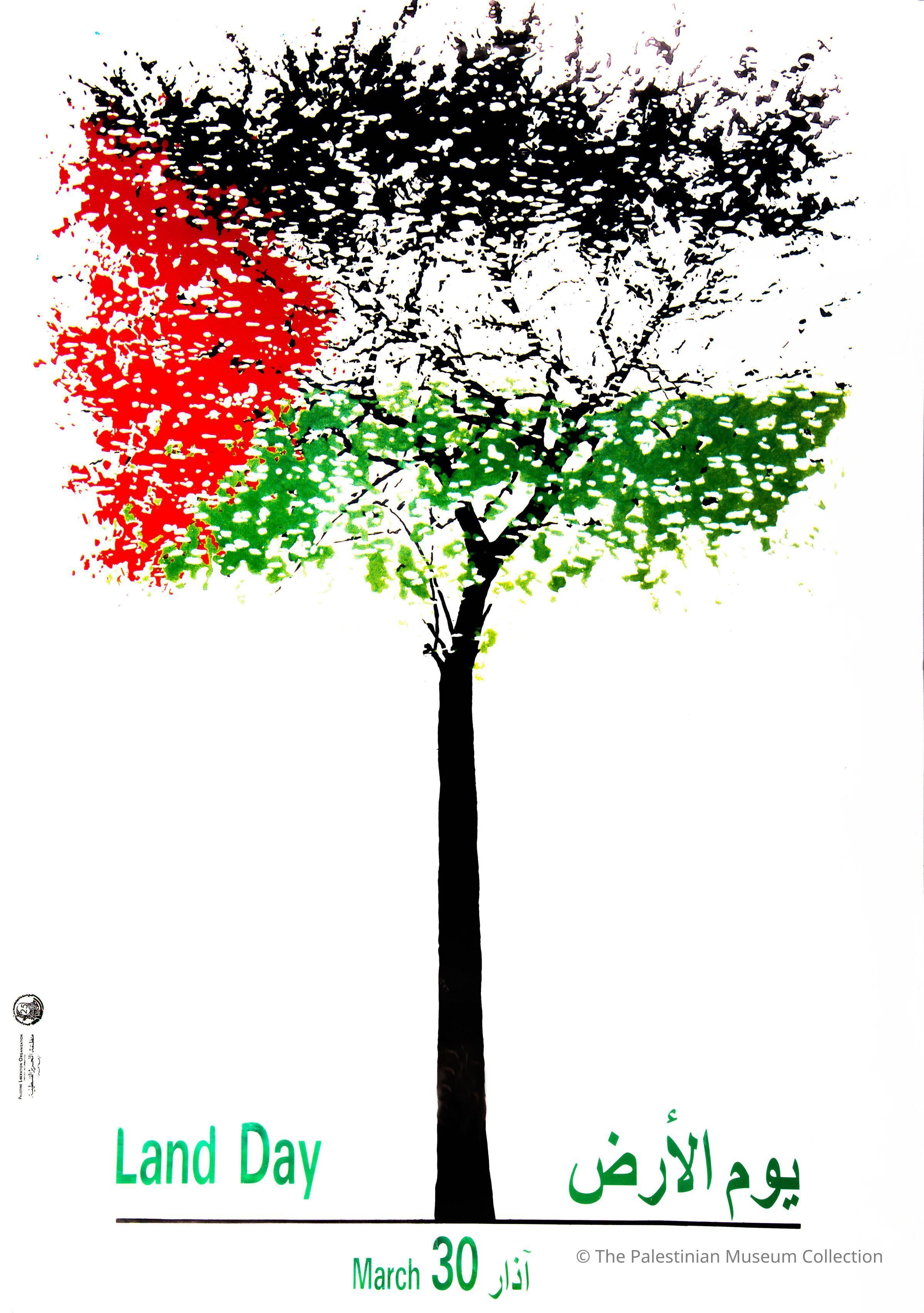 A poster entitled 'Land Day' issued by the Unified Information Office of the Palestine Liberation Organisation (PLO) in 1990 commemorating Land Day.Dimensions