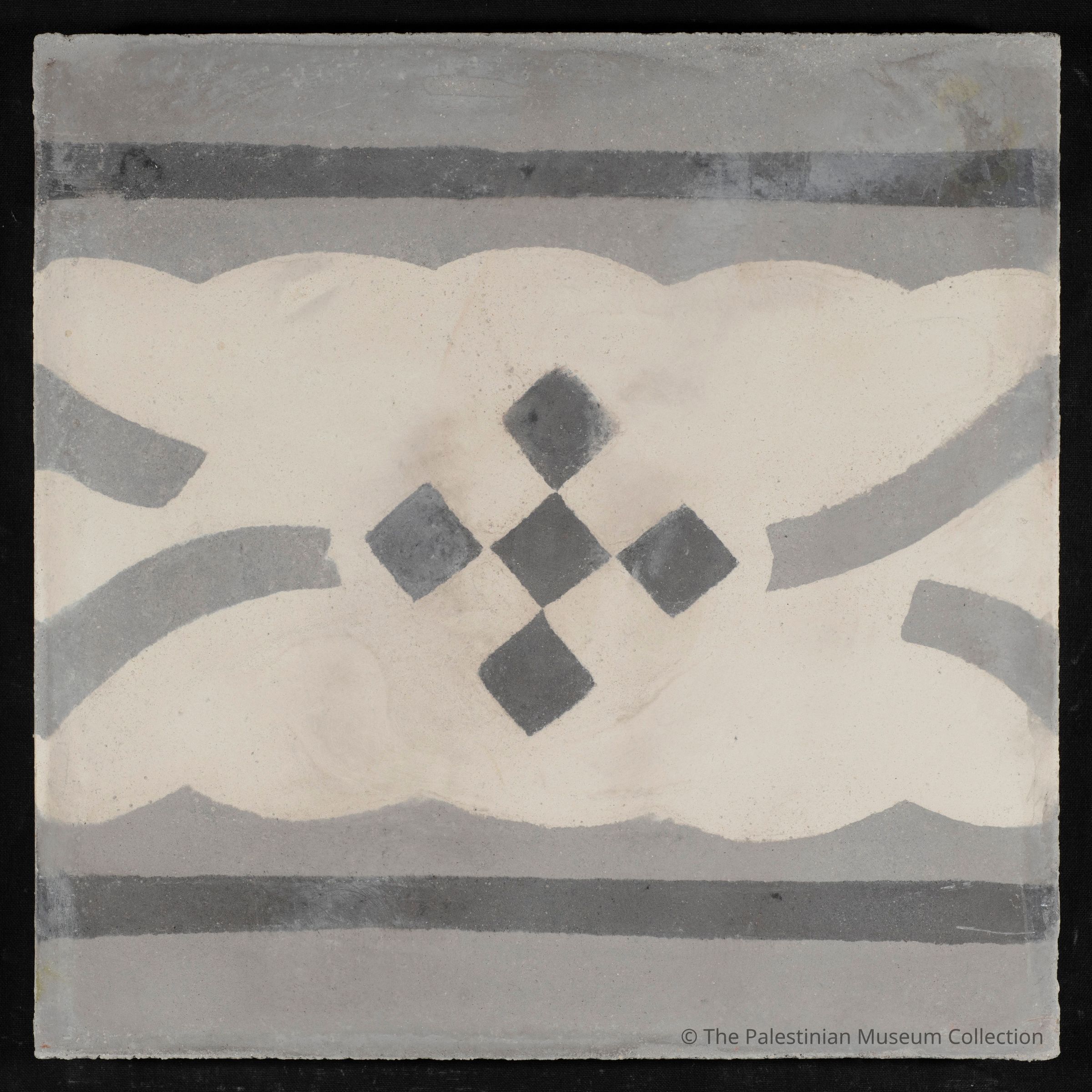 بلاطة إسمنتيّة ملوّنة بحجم 20 × 20 سم، تحمل تصميم "زنار النقاط"، وهي نموذج حديث سُكبت في قالب يمتلكه مصنع أصلان للبلاط في نابلس يعود إلى بداية القرن العشرين.