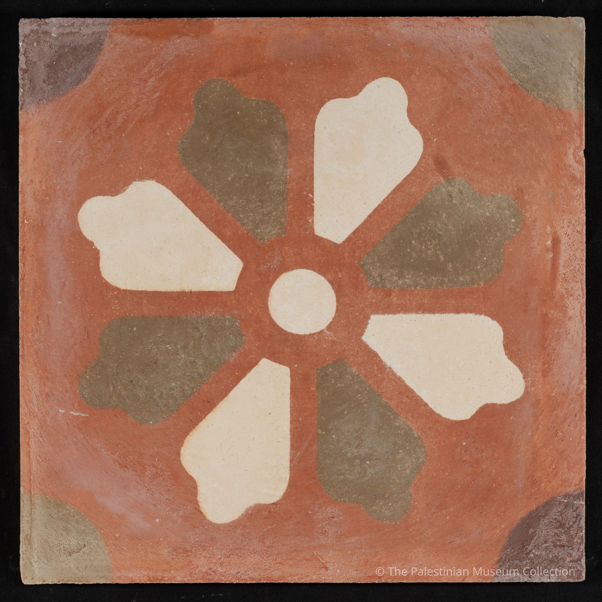 A 20 × 20 cm coloured cement tile. This tile is a contemporary reproduction, cast using an original mold from the Aslan Tile Factory in Nablus, which dates back to the 1890s.Made/Created