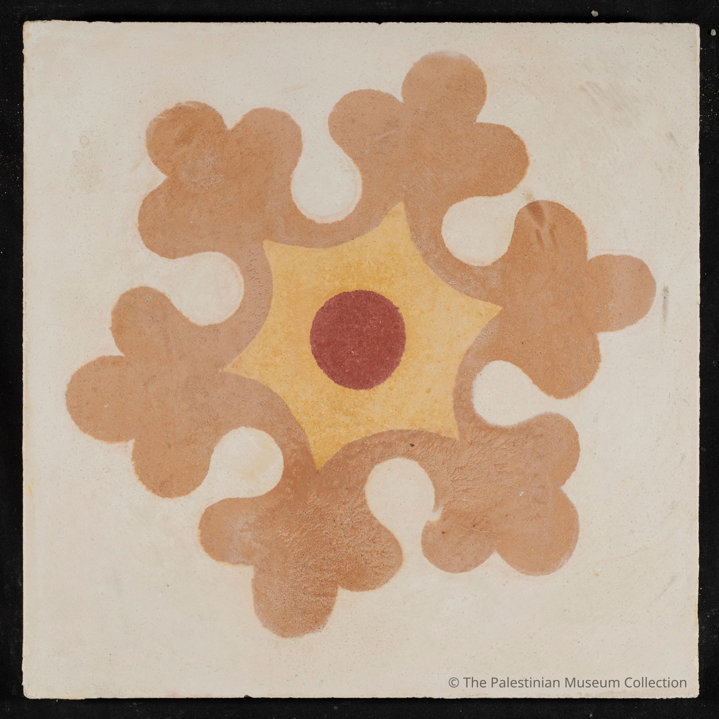 A 20 × 20 cm coloured cement tile. This tile is a contemporary reproduction, cast using an original mold from the Aslan Tile Factory in Nablus.Made/Created