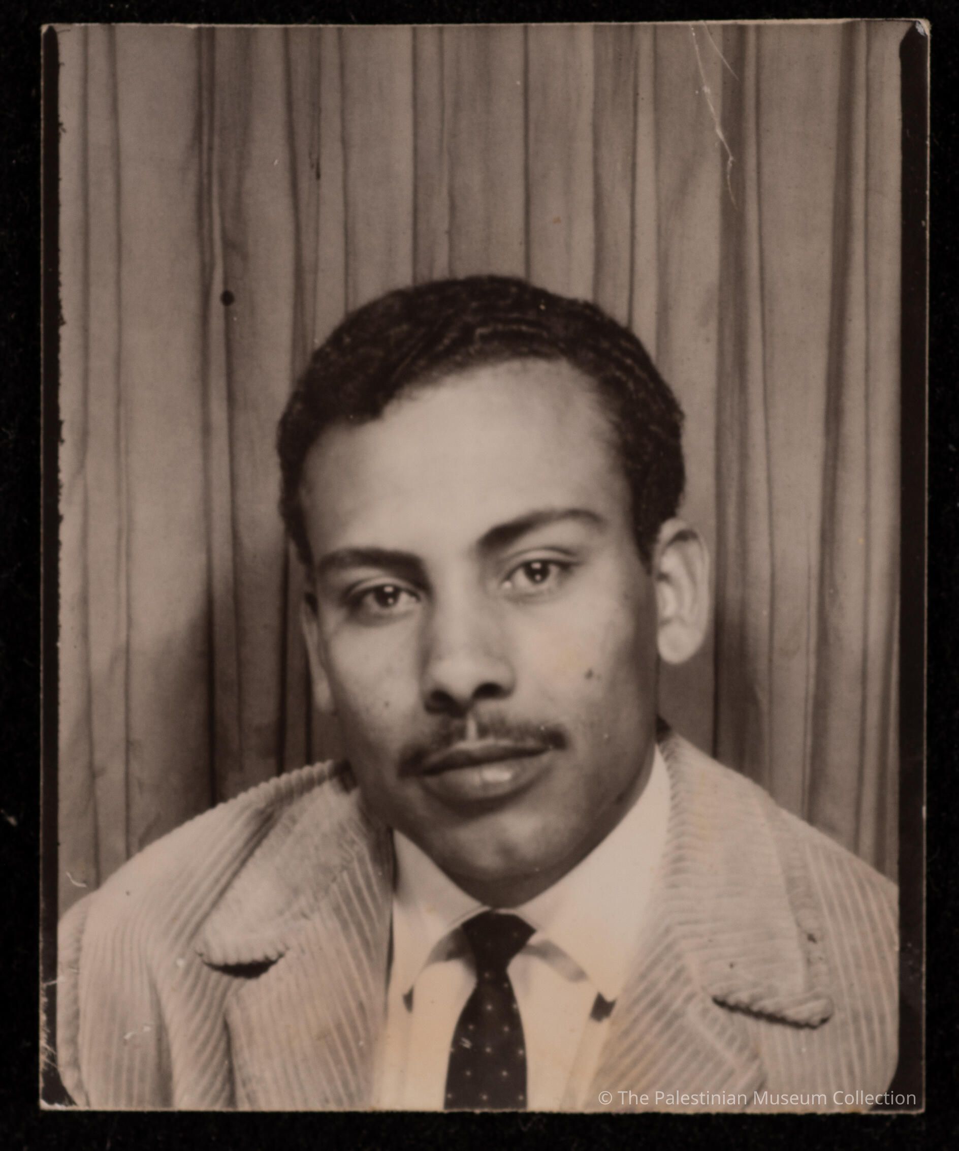 صورة غير ملونة، يظهر فيها شاب يرتدي ملابس رسمية وربطة عنق.