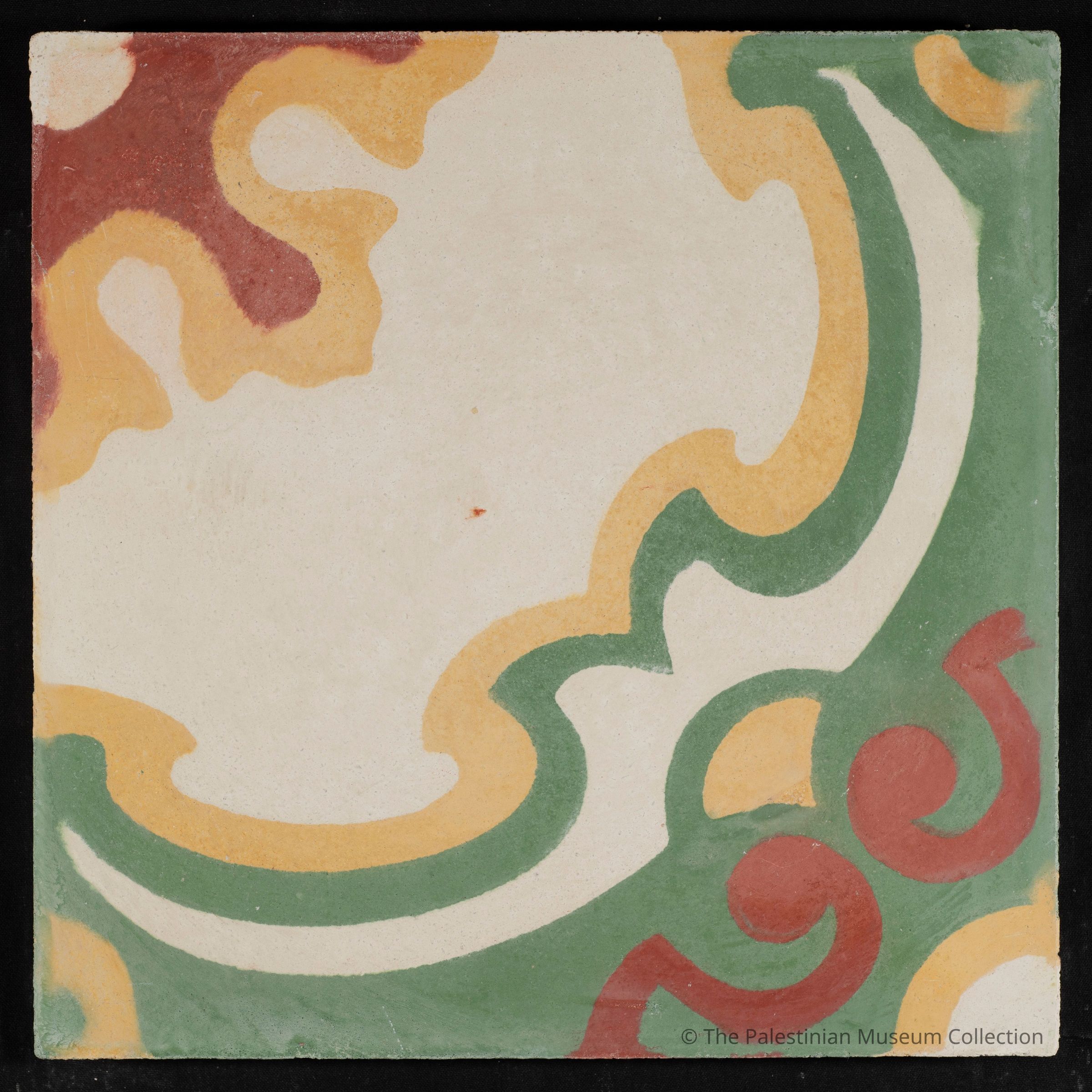بلاطة إسمنتيّة ملوّنة بحجم 20 × 20 سم، تحمل تصميم "البطيخة"، وهي نموذج حديث سُكبت في قالب يمتلكه مصنع أصلان للبلاط في نابلس يعود إلى عشرينيّات القرن العشرين.