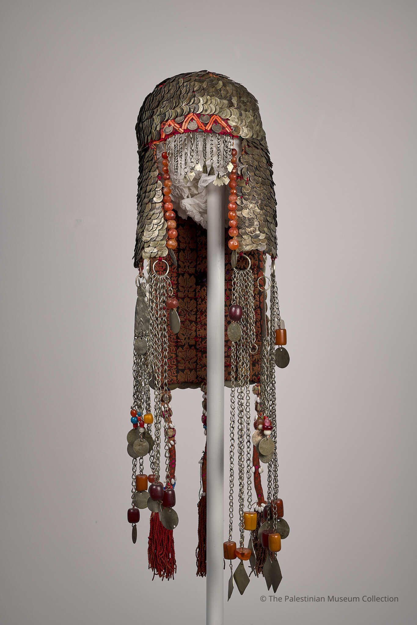 وقاة دراهم (طاقيّة) من جنوب الخليل وغزة وبئر السبع، مصنوعة من القطن، ومُطرّزة بخيوط حرير ومُزيّنة بشكل كامل بعملات عثمانية، أضيف إليها من الجهة الخلفية قطعة قماش مُطرّزة ومغطاة بالكامل بالعملات النقدية والودع، ويتدلى منها شراشيب مُطرّزة تحمل الخرز الملون، وفي مُقدّمتها مرجان أحمر وسلاسل من حجر العقيق تحمل قطع نقدية وسلاسل وتعليقات فضية، كما يمتد من جوانبها سلاسل فضية على أطرافها عملات نقدية وحجر العنبر ومطاوح وبرابخMade/Created