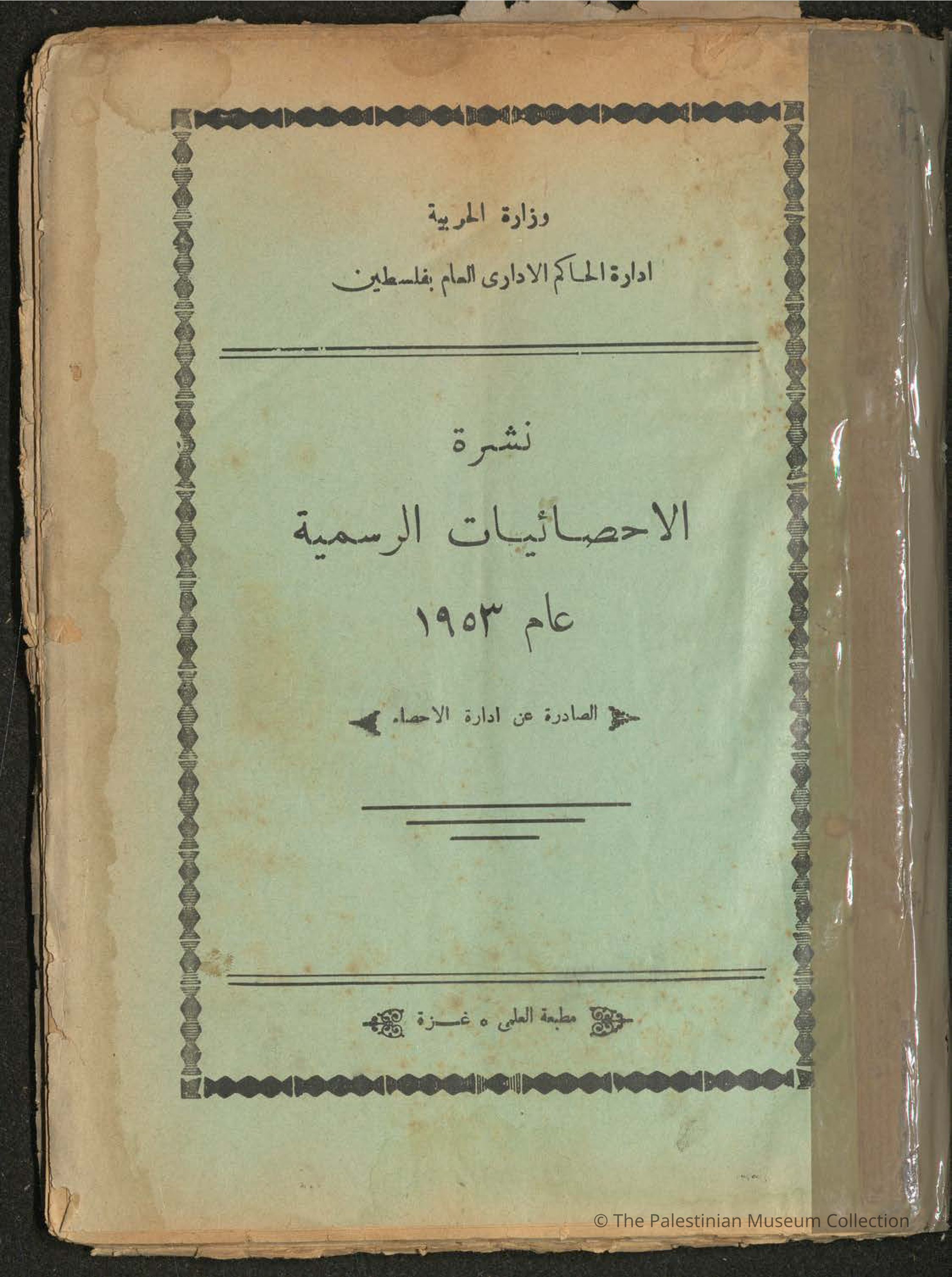 The Official Statistics Bulletin for Population Numbers, Births, Deaths, and Census Data for the Gaza Strip. It was issued by the Statistics Administration and printed in separate issues by Al-Alami Press in Gaza. The 14th issue was printed in the year 1953 while issues numbered 30 to 39 were printed in the year 1954. All of them were compiled into a single bulletin. The bulletin is 134 pages long.Dimensions
