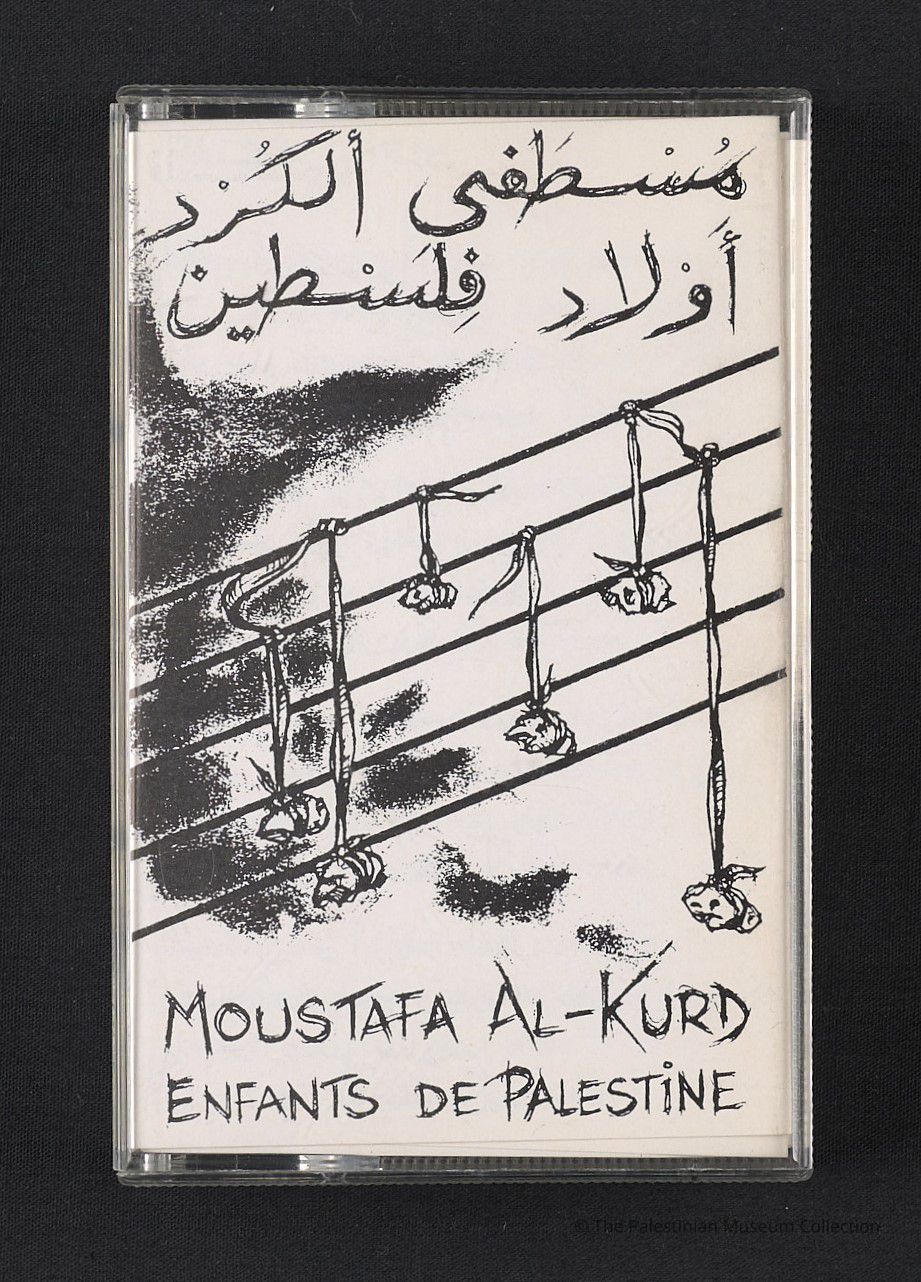 شريط صوتي، كاسيت غنائي وطني بعنوان " أولاد فلسطين" باللغة العربية، للفنان الفلسطيني مصطفى الكرد، أنتجته الجمعية الطبية الفرنسية الفلسطينية في باريس عام1989، يوثق عبر ألحانه وكلماته معاناة الأطفال الفلسطينيين في ظل الاحتلال الإسرائيلي. يعد احدى أبرز الأعمال الفنية التي مزجت بين النضال السياسي والتعبير الفني. الغلاف الأمامي يُظهر رسماً رمزياً لطفولة معلقة على أسلاك النوتة الموسيقية، في إشارة قوية إلى استخدام الفن كأداة مقاومة. كُتب على الغلاف باللغة العربية والفرنسية.Dimensions