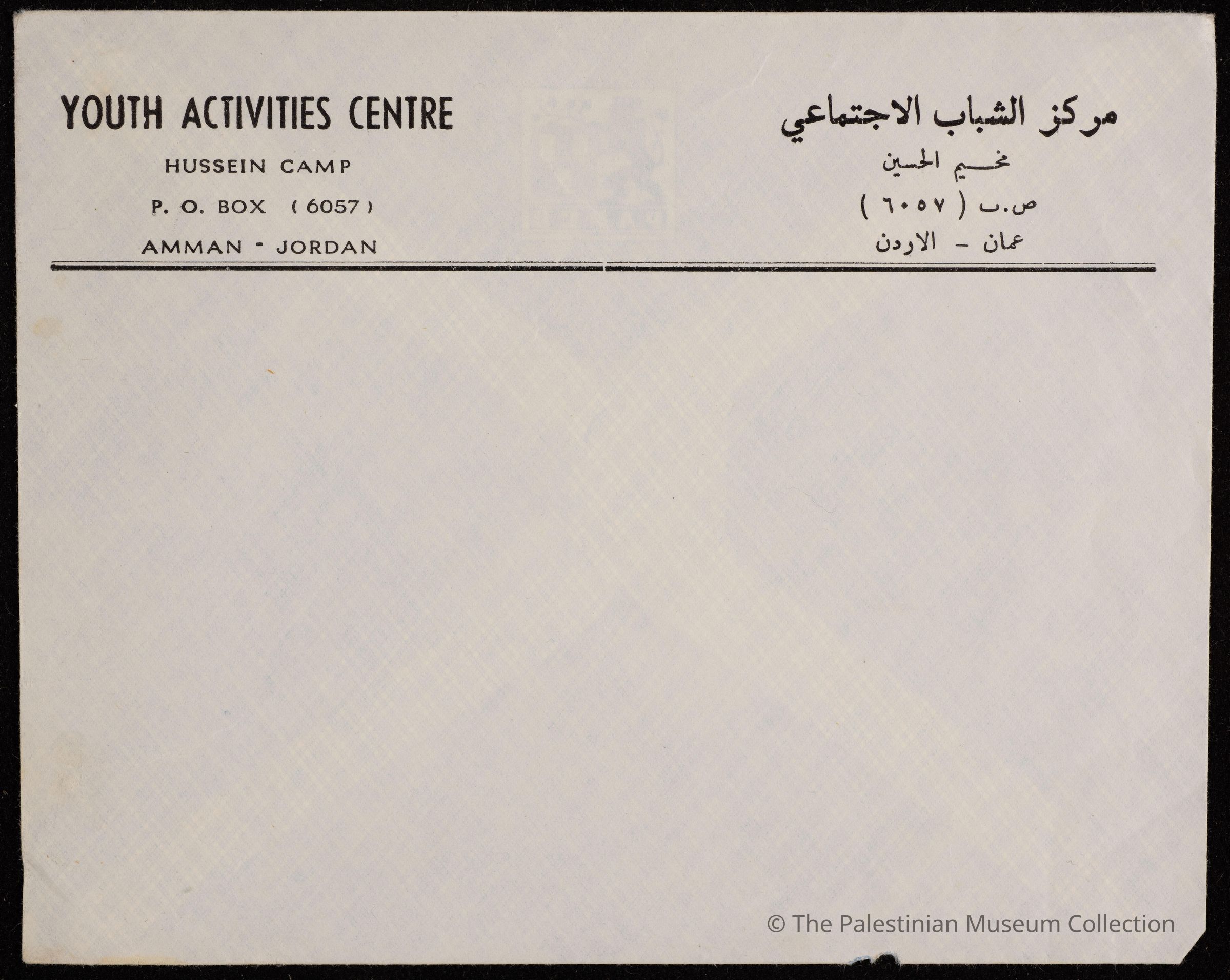An invitation from the Youth Activities Centre of the Hussein Camp addressed to Mr. Ali Foda to attend a poetry evening.Dimensions