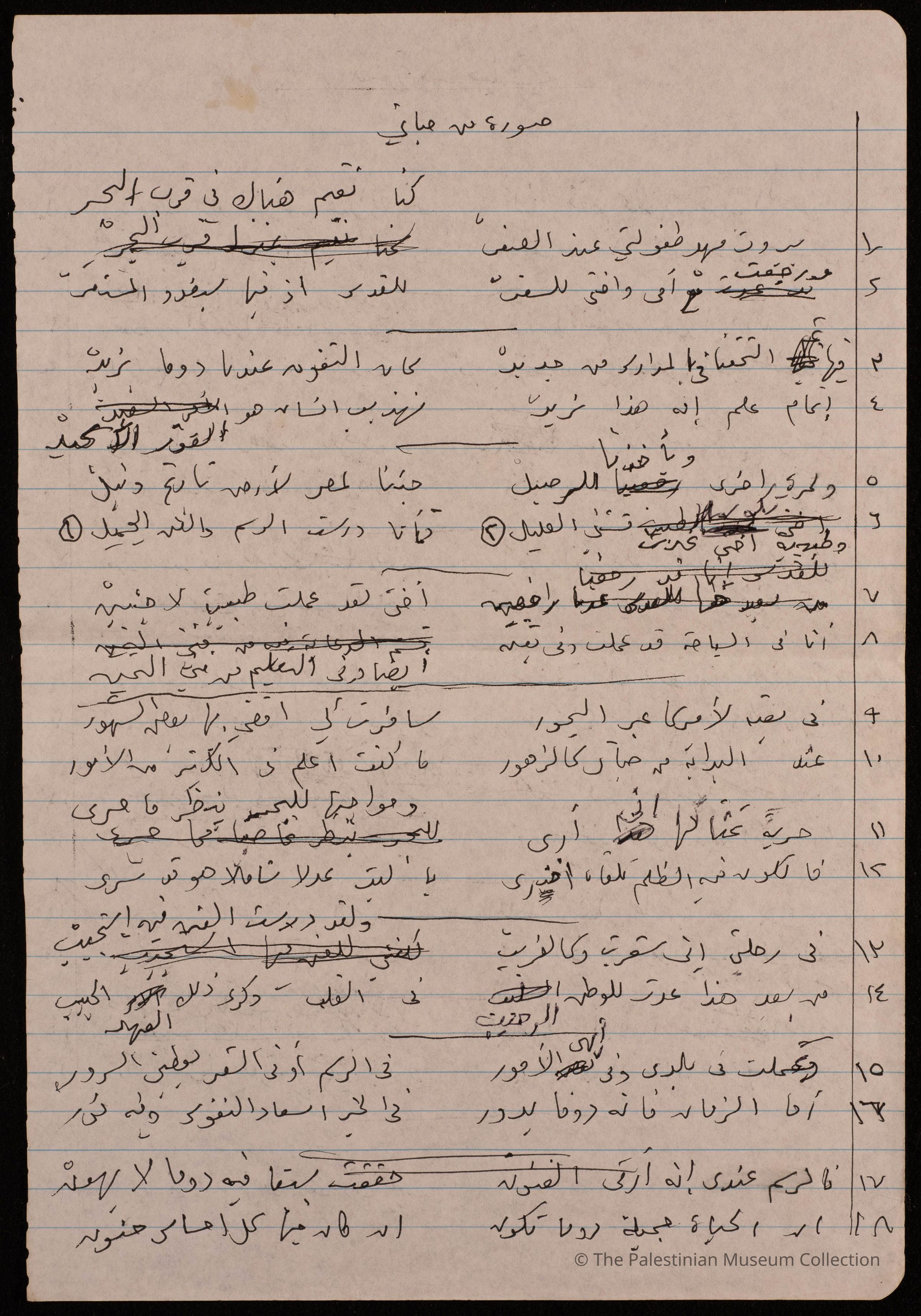 مخطوطة قصيدة باللغة العربية بعنوان" صورة من حياتي" للشاعرة فاطمة المحب، ولا تحمل الوثيقة اية اشارة الى تاريخ كتابتها