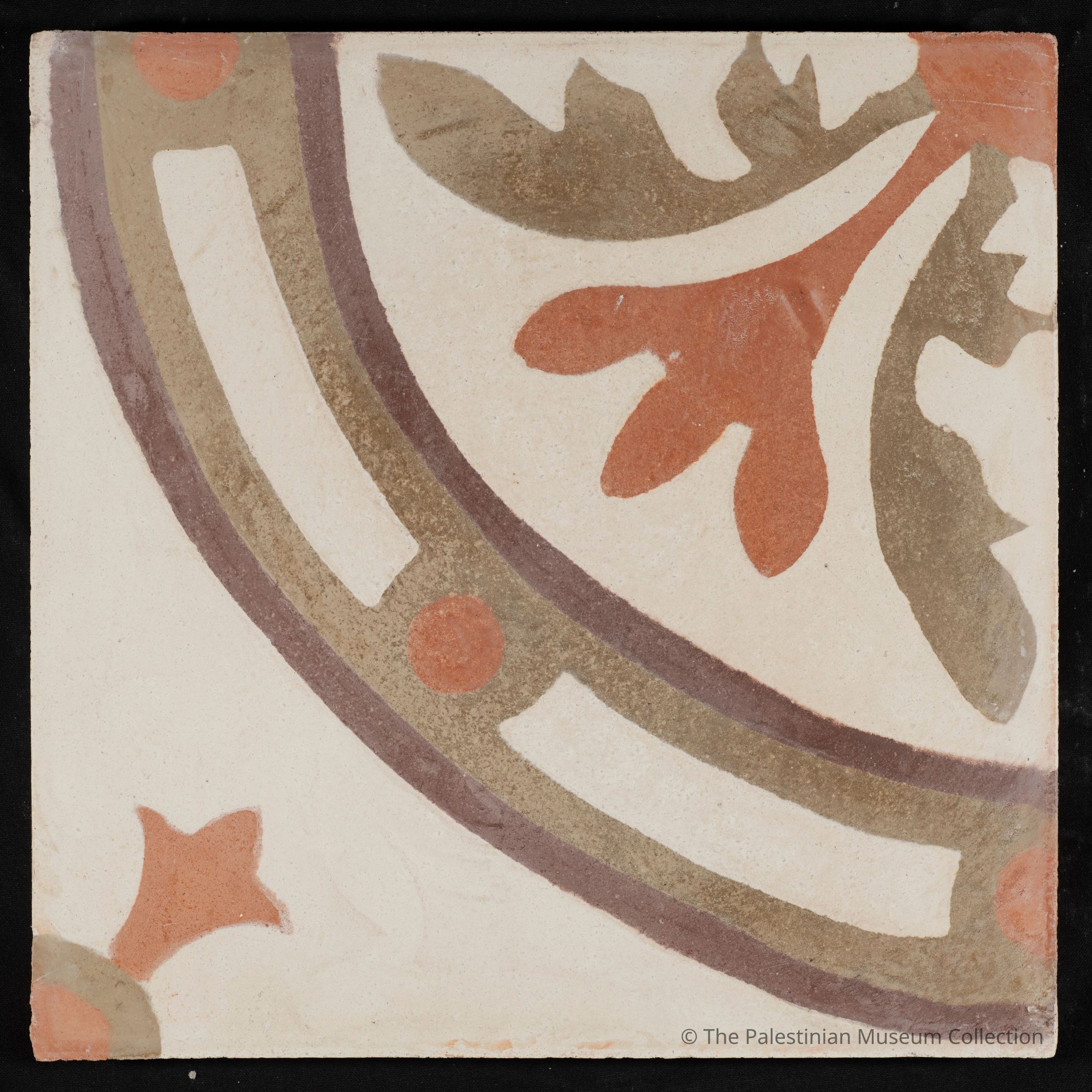 A 20 × 20 cm coloured cement tile. This tile is a contemporary reproduction, cast using an original mold from the Aslan Tile Factory in Nablus, which dates back to the 1930s.Made/Created