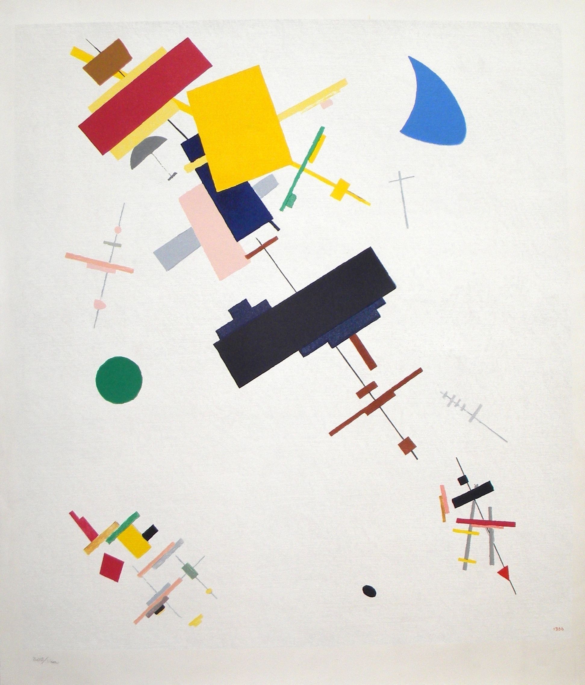 As part of his Supremus series, this painting exemplifies Suprematism’s core ideals: pure abstraction, non-objectivity, and emotional transcendence through form and color. The elements in the composition appear to float in undefined space, evoking a metaphysical realm untethered to earthly or representational concerns.