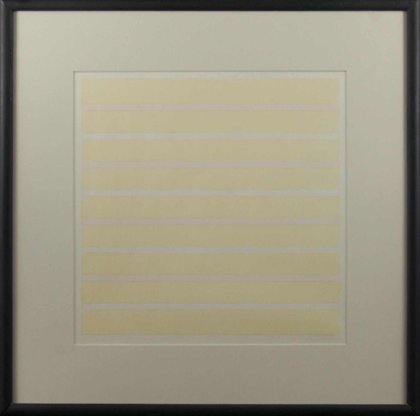 Typical of Martin, this minimal work is composed of wide color stripes with the white of the paper in-between. This print is rendered in soft yellow.Dimensions