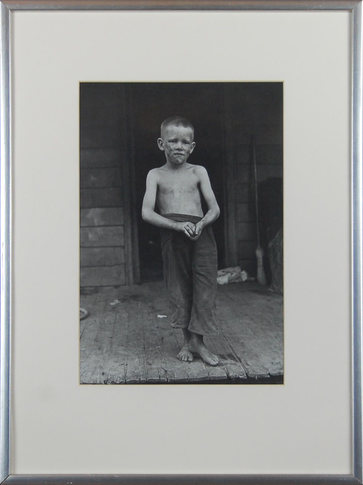 These works come from the portfolio Gedney assembled in rural Kentucky in the middle of the 1960's. One image shows an African-American youth, wearing ajacket and hat. A large shadow of the child was captured on the wall against which he was photographed. The second image is a shirtless young child from the Cornett family, standing on the porch of his home. Gedney took numerous photographs of the Cornett family with whom he lived. (Willie Cornett was a laid-off coal miner.)Made/Created