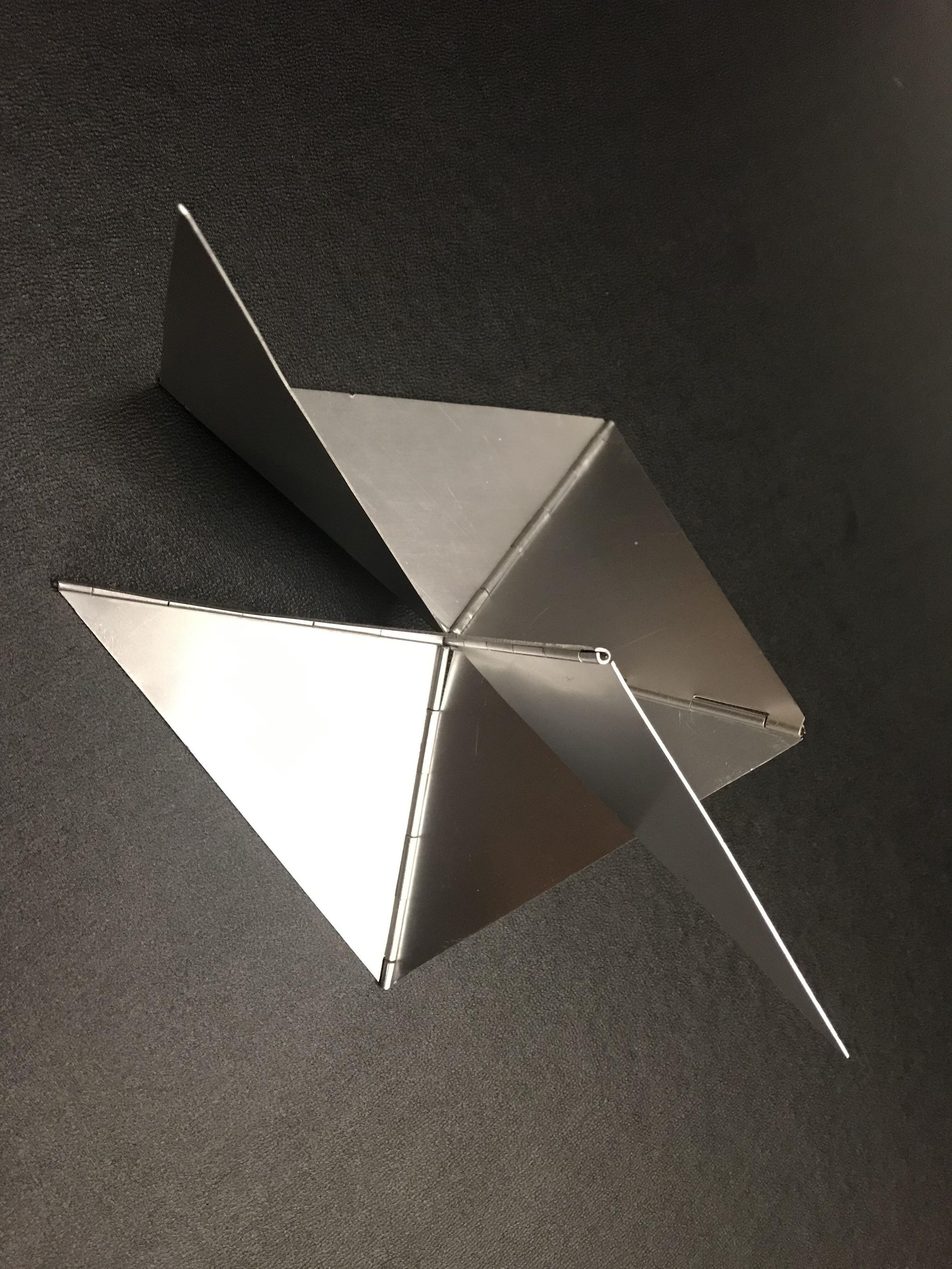 This sculpture is composed of numerous flat planes, in a pale shiny silver tone, attached to each other on two or three sides with hinges. The triangular pieces, can be moved in different directions to create different forms which the artist termed "animals" or "beasts." Clark encouraged viewer participation allowing the viewer to change the shape of the sculpture as the parts are moved around.Made/Created