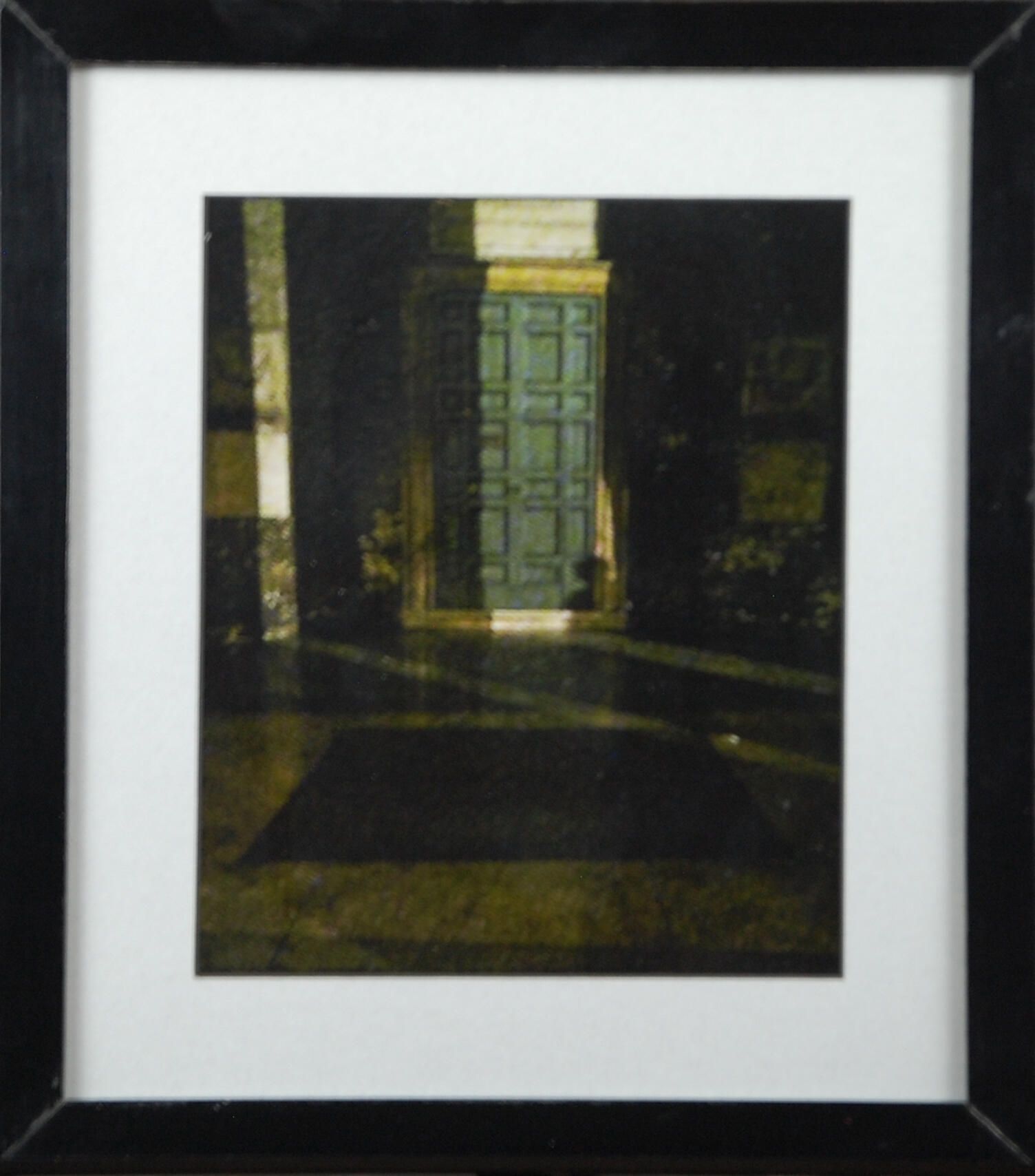 This work is a copy of a photograph of a doorway with bright light in a rectangle in the center and shadows surrounding it shown, as large blocks of darkness.Dimensions