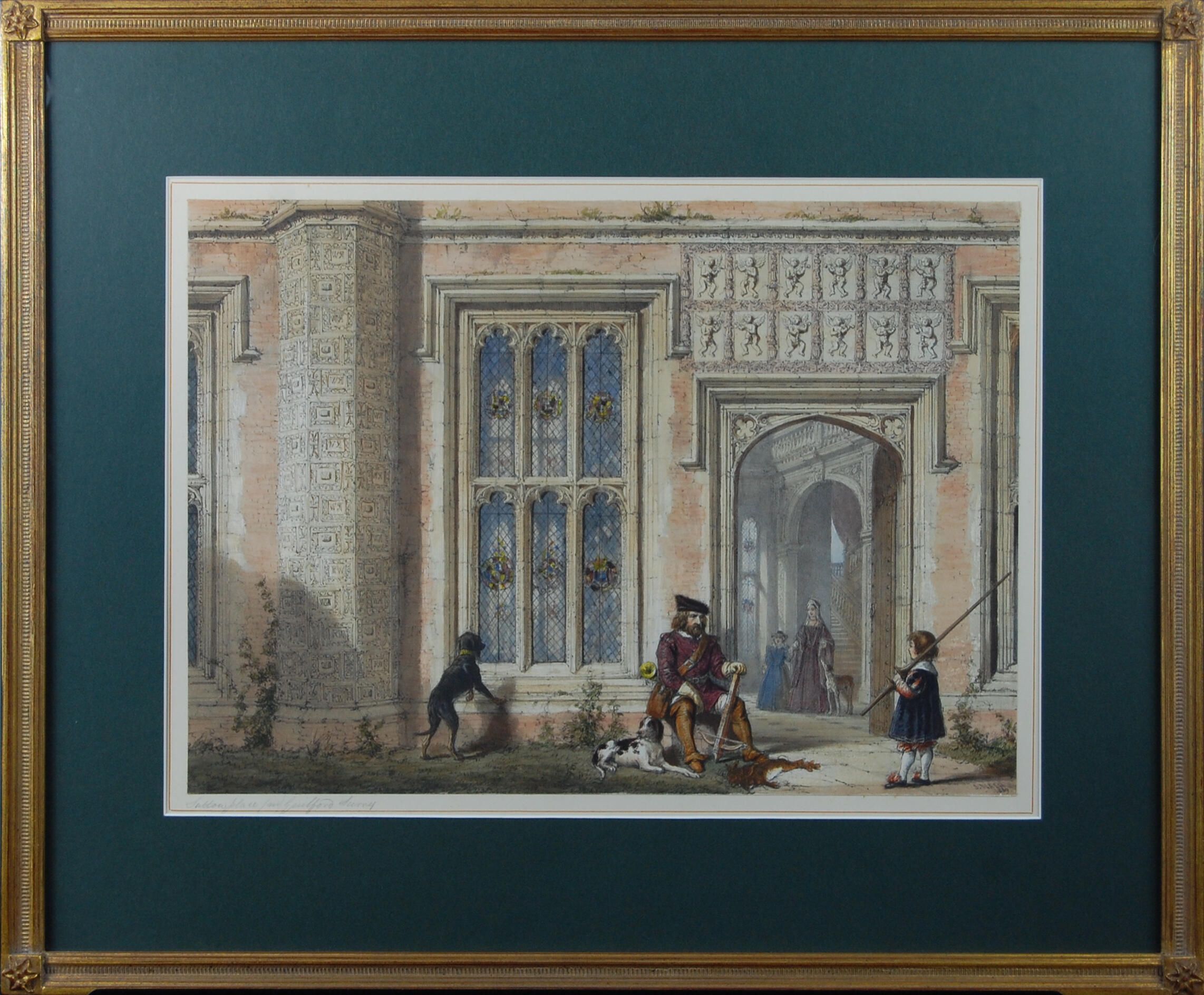 The four prints in this collection portray the interiors of grand homes in England. The works are detailed scenes showing realistic decor, wall coverings, and furniture.Artwork Details