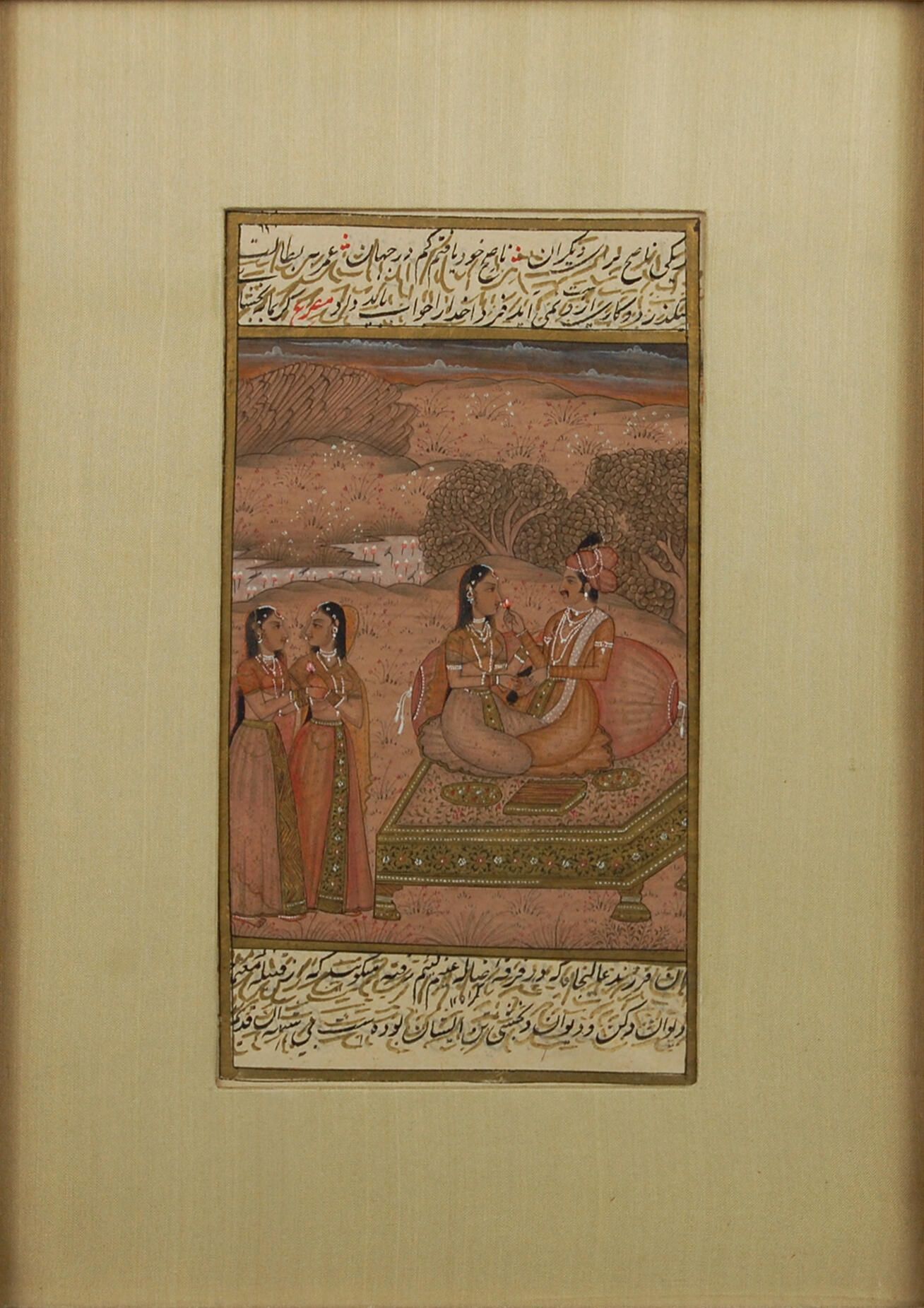 This landscape includes two figures on an outdoor seat with two standing figures to their right.Artwork Details