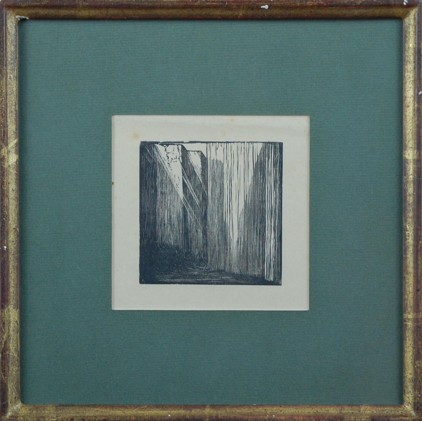 Using a pattern of vertical and diagonal lines, Craig, created a woodcut of a stage with curtains based on his design. (Note: there are several similar images of stage backdrops.)Artwork Details